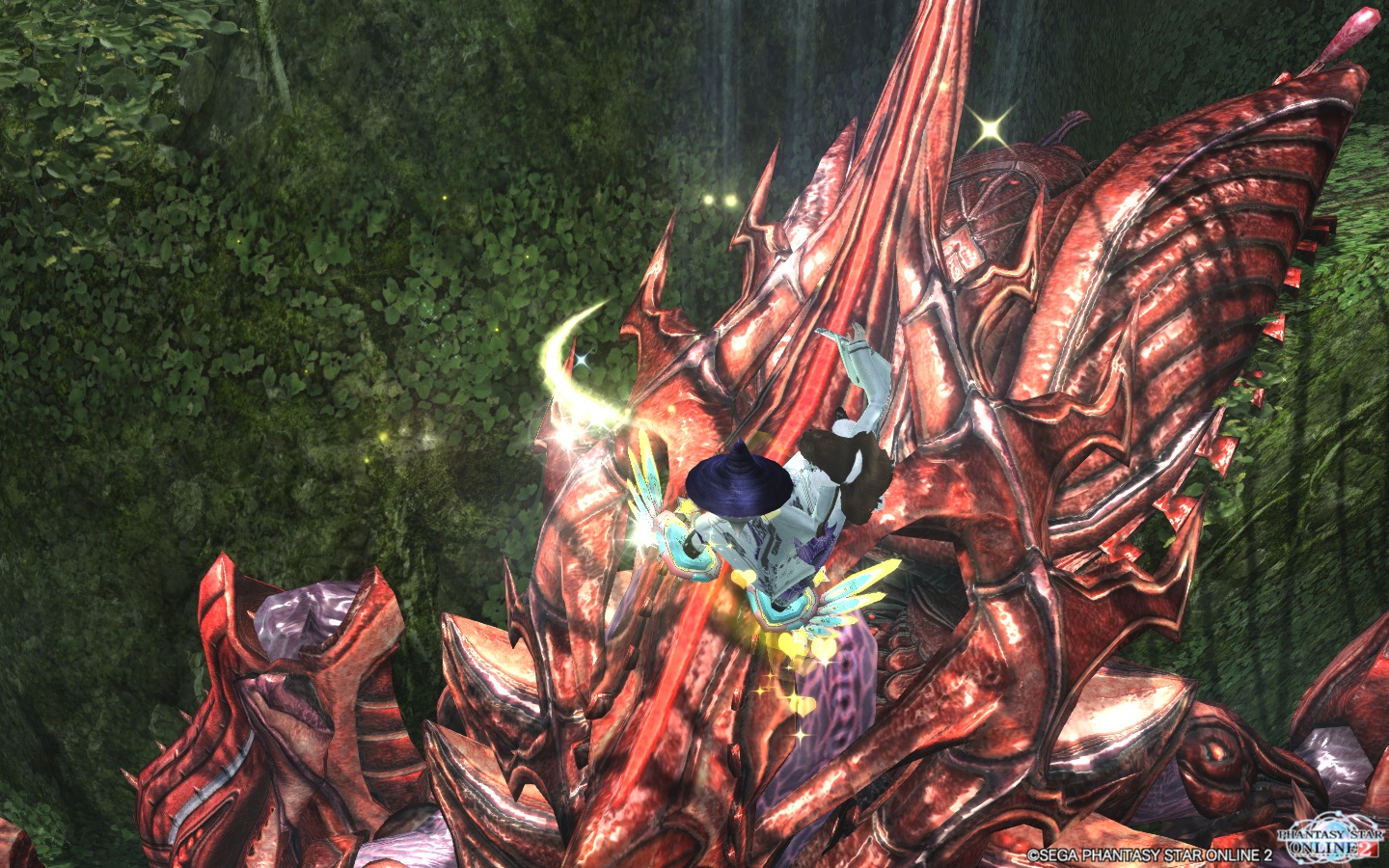 タイミングを見計らって弱点コアのタゲを取り、ジャンプで高度を取ってから、PA「グランウェイブ」でそこに向かって突撃、あとは通常攻撃を交えて張り付き続けるだけで、いつかは勝てます。こちらが被弾する可能性は殆どありません。
