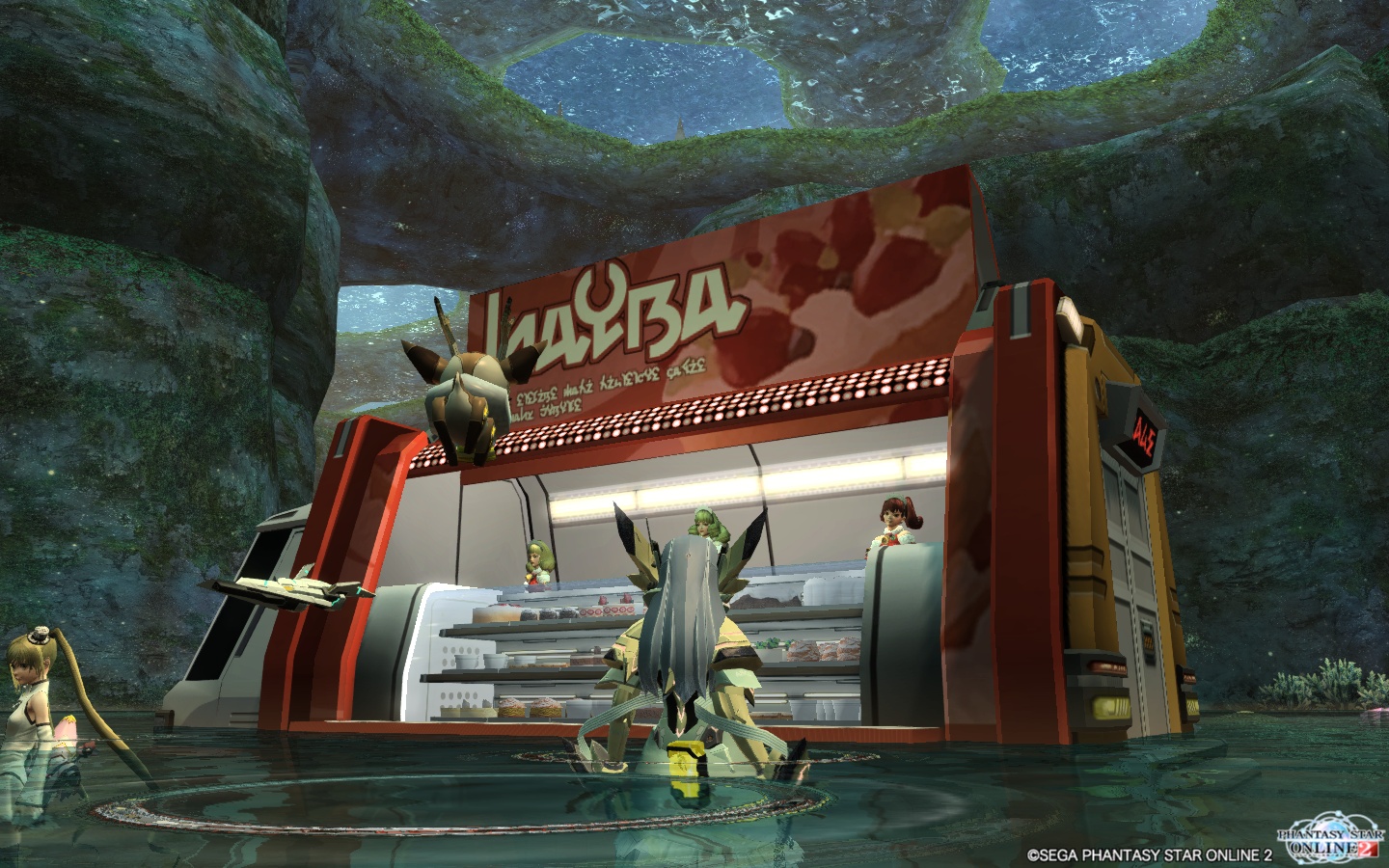 海底エリアでもナウラ3姉妹は元気に営業中です。ただ…店の場所はもう少し考えたほうがいいかなと言わざるを得ません。エリス自身も腰から下が水の中なわけで…。どのように営業許可を取るのか謎なのですが、アドバンスクエストとかでもケーキ屋が登場することはあるので、彼女らには水没してるとか、そんなこと気にしてはいけないのかな(笑)。