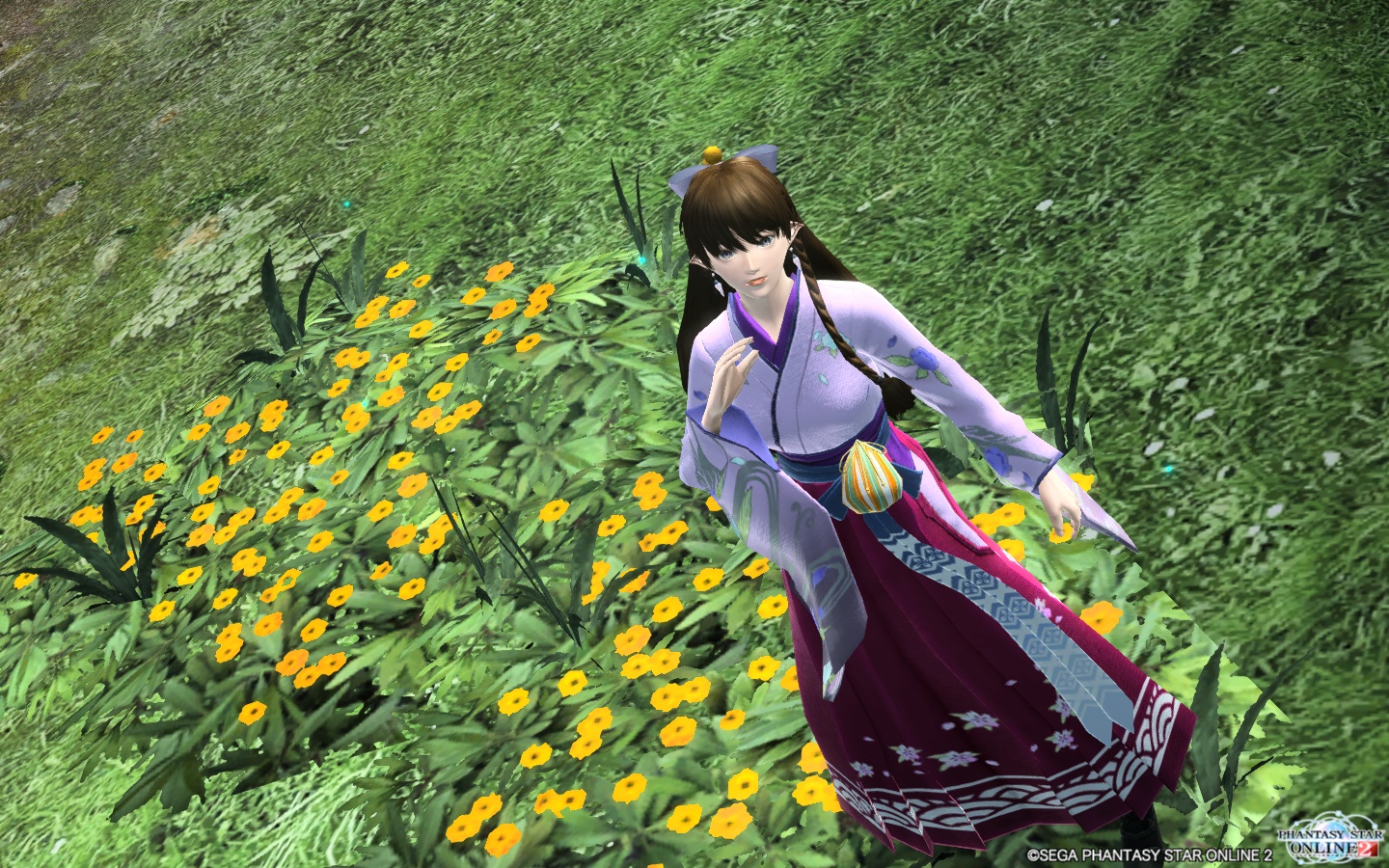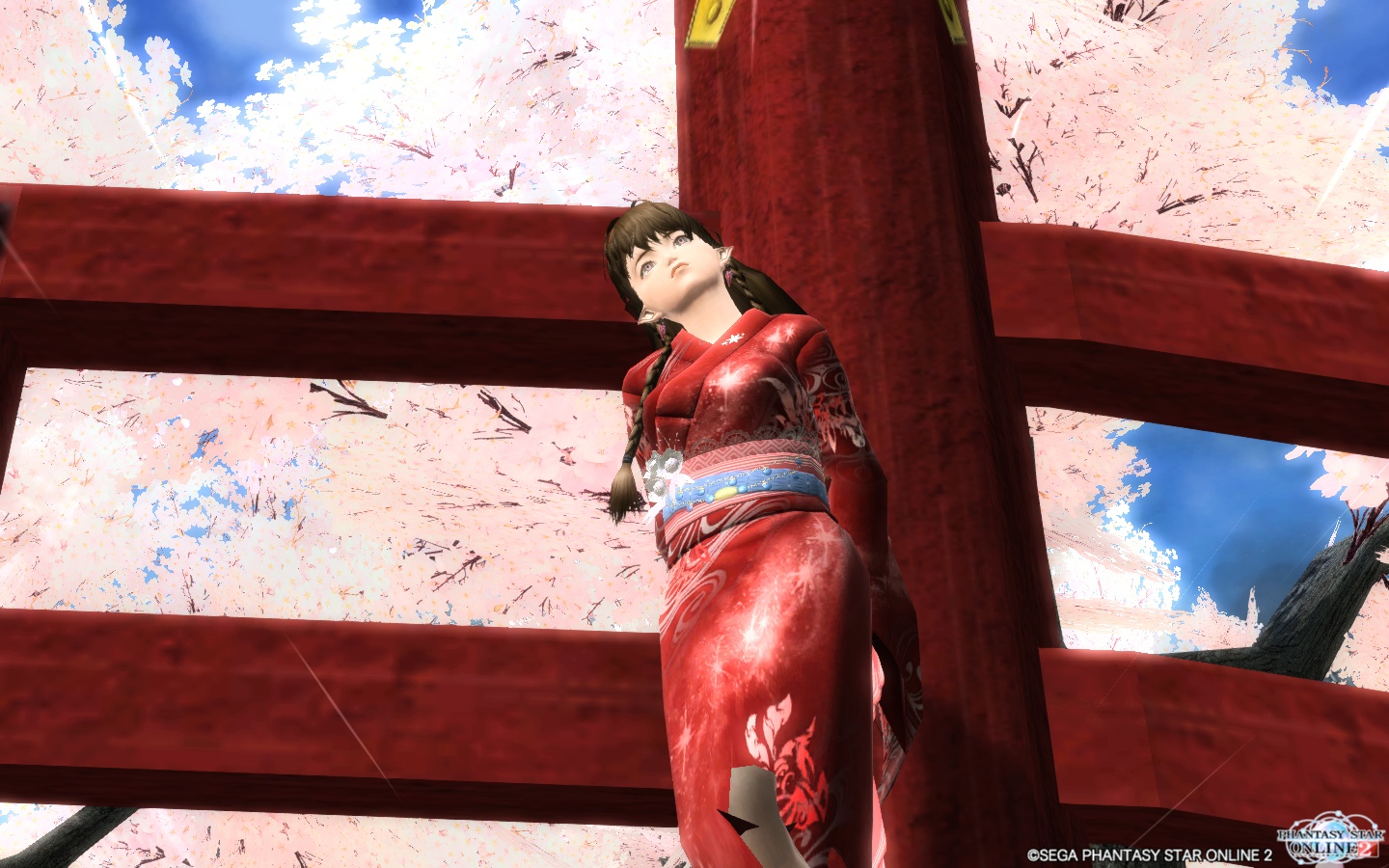和風拠点が実装されたら、そこで色々なシチュエーションを考えられそうですが、今回は惑星ハルコタン 白ノ領域 に撮影旅行です。上を軽く見上げるぐらいの方が絵になるかなあと一番思うテーマです。