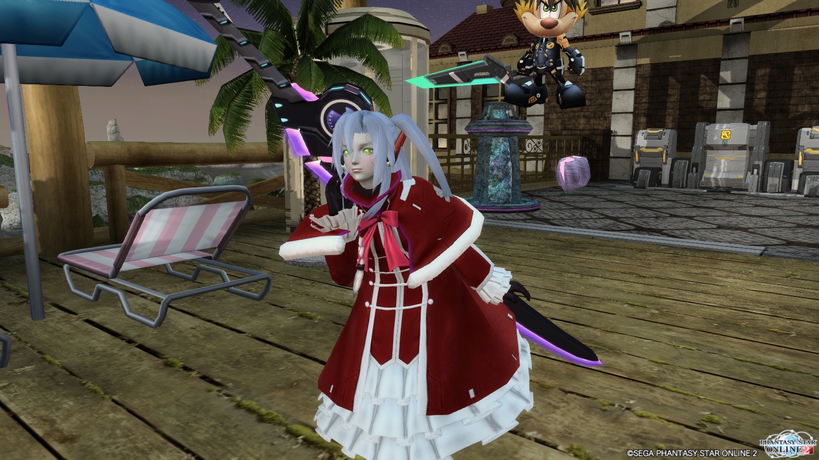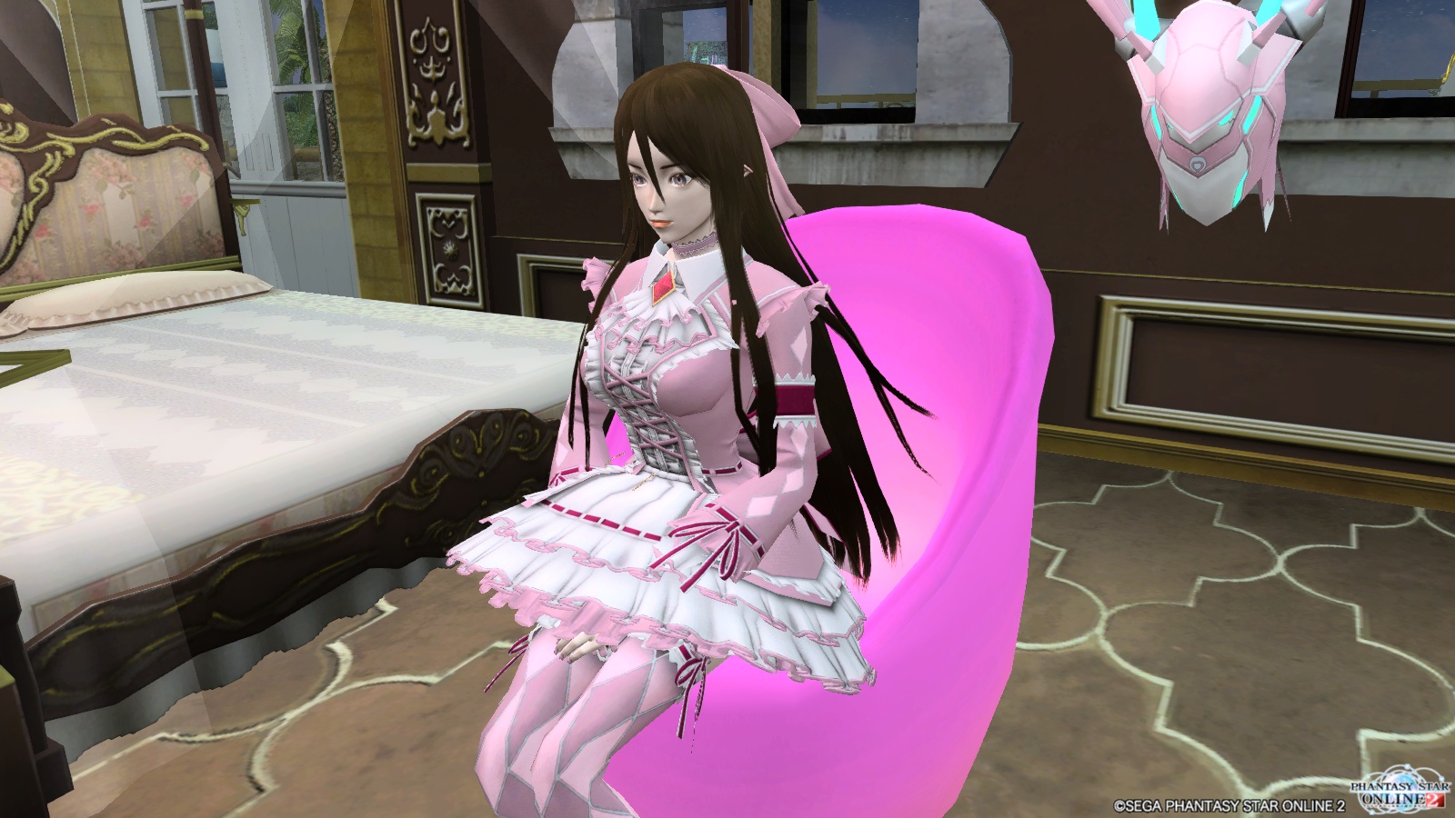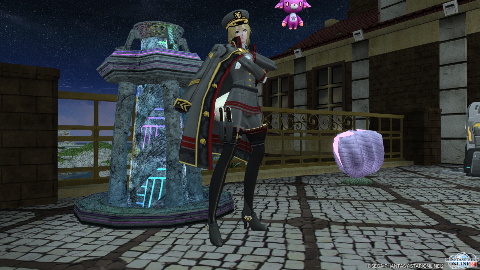 さて、これとは別に『ラグオルメモリ』と交換でもらえる、前作PSOの外見を模したコス。これについても幾つか入手しました。ラグオルっていうのはPSOで冒険の舞台となる惑星、今のチームルームで選べる「パイオニア2」はラグオルに移民するために一般人(とプレイヤーも)をたくさん乗せた船です。