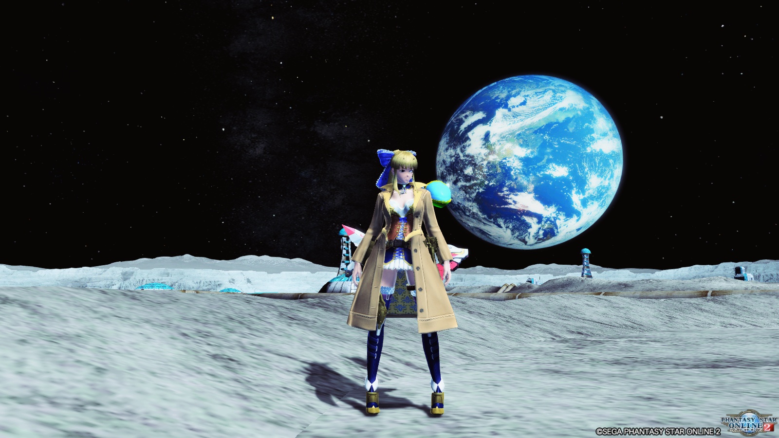 よくこういう感じの月面の写真ありますよね。いや、さすがに現実世界の月面には建造物のたぐいは無いにしてもねー。そして、最新アップデートで追加された 月面拠点だと、ウサギさんと一緒に地球を眺めることが出来たりもします。