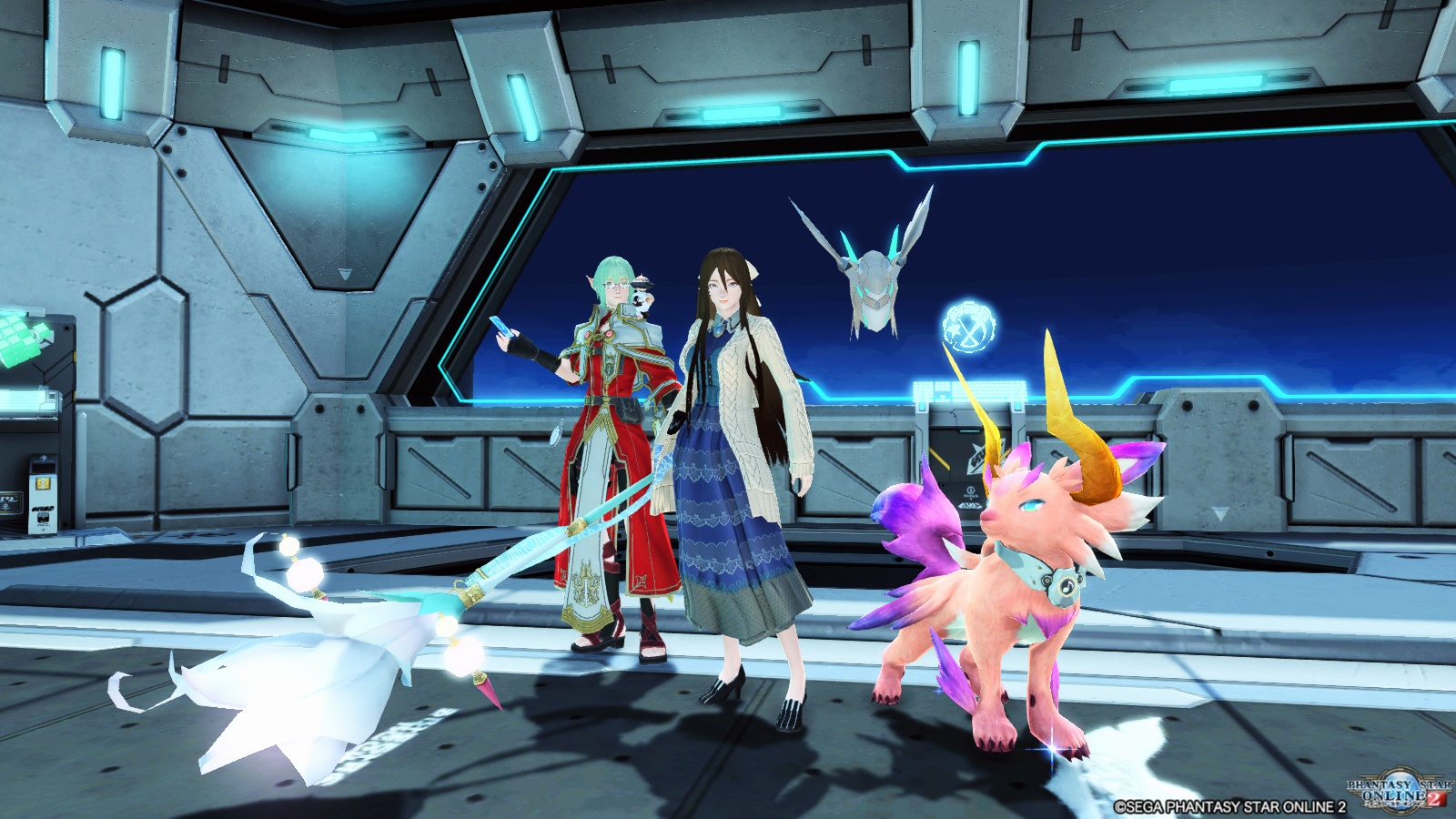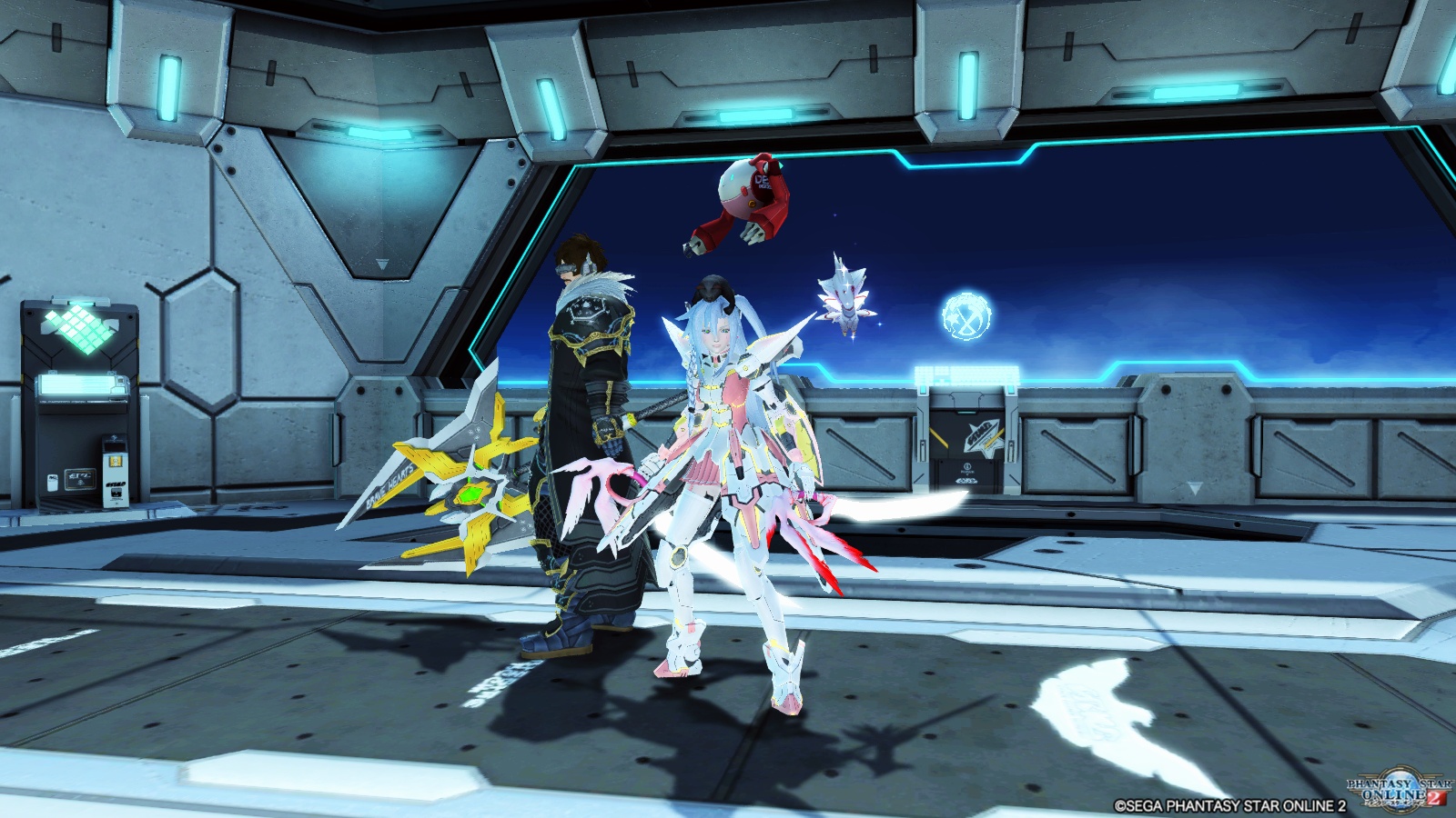 この二人はどちらもPSO2esの方でメインのプレイヤーキャラクターになっていて、二人で大砲を使っています。結局ストーリーの方は最後まで行けてないんですけどね…。ジェネたちが登場して、絵柄が急に甘くなって愕然としたのを今でも忘れられません(笑)。