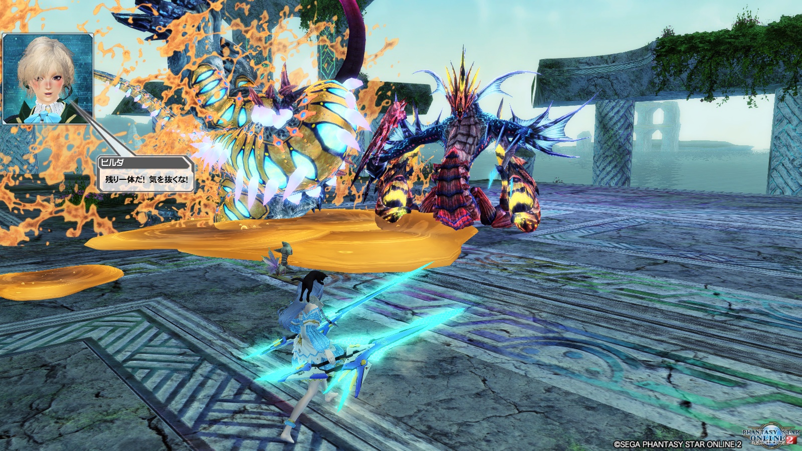 ショコラ姉さんの奮闘でアップグレードされた『ユニオンDブレード』の試し斬りです。数値性能的にも100以上攻撃力が上がっており、加えてアップグレードされた潜在能力「錬磨天恵・光翼」は PP回復効果上昇の効果が加わります。これは「通常攻撃を当てた時のPP回復量」と「PP自動回復量」の双方が上がる、というものです。心持ち何もしていない時のPP回復ペースが上がっています。なので、アップグレード前よりPAがより多く使えるようになった印象です。
