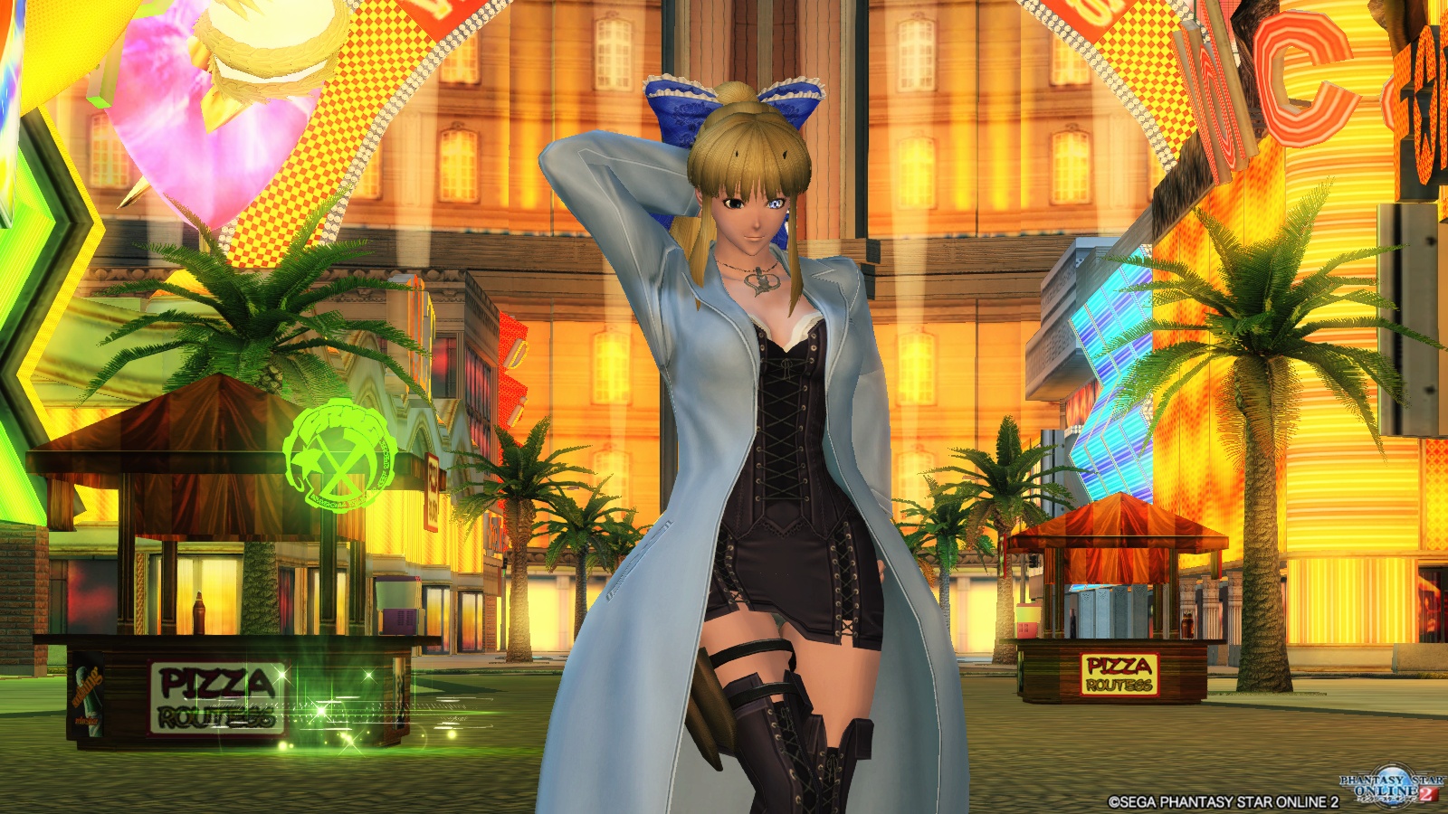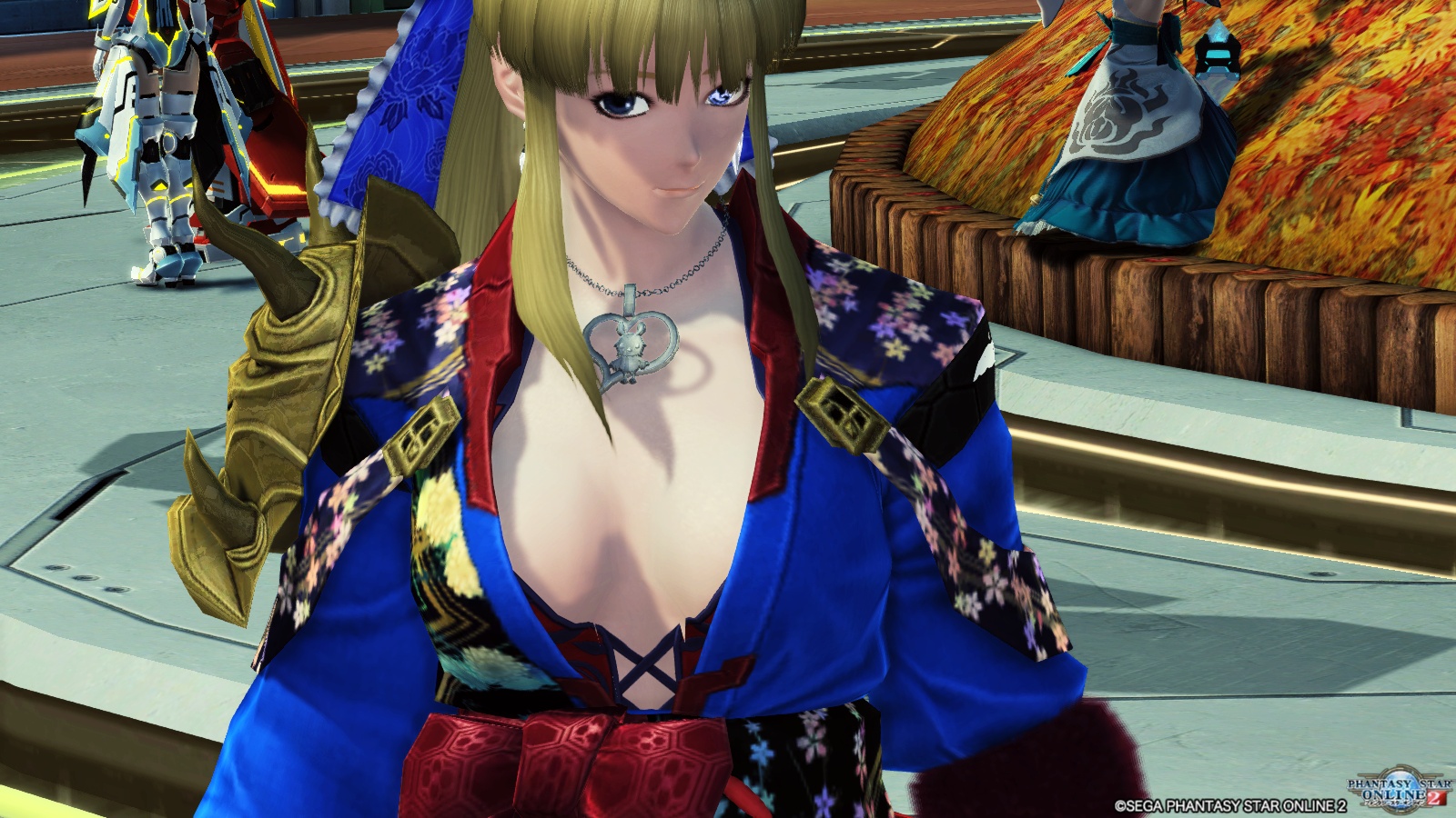 『カブキカミトキ』はベースに何を着るかで露出度がだいぶ変わるアウターです。姉さんはそこに『セクシーモノキニ』をわざと合わせていて、結果としてとても色っぽいことになってます。エレナやエリスにはちょーっと出来ない扮装です。