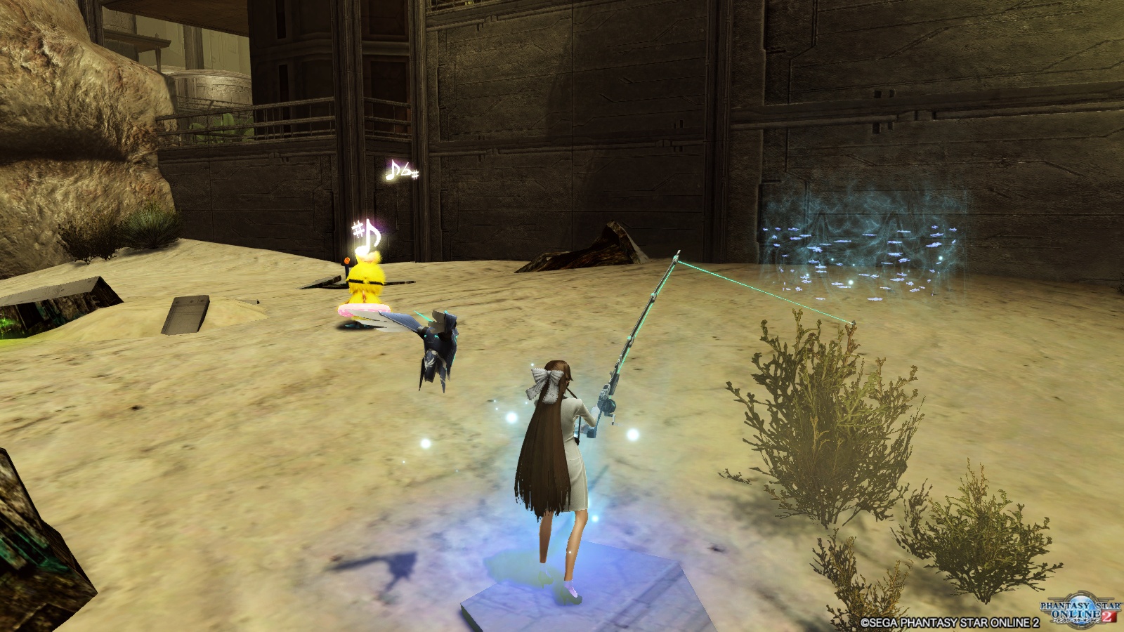 …というエレナも「釣りをするなら他の場所のほうが良い」と突っ込まれそうです。しかしながら、今3姉妹は皆で採掘場跡でのギャザリングに勤しんでいます。今回の場合、釣りはあくまでフィーバーに持っていくための前段階で、主目的は採掘の方です。