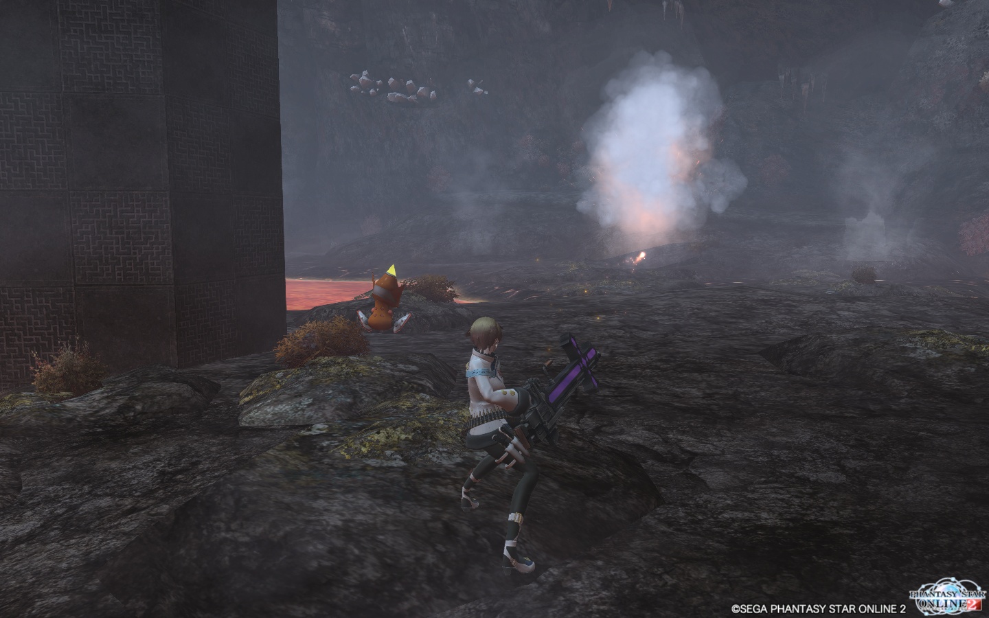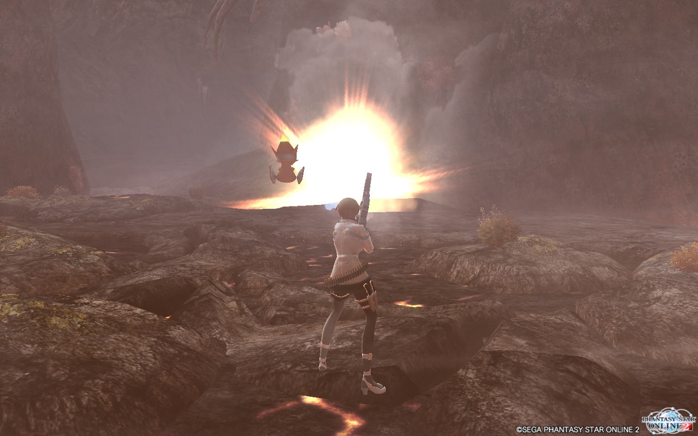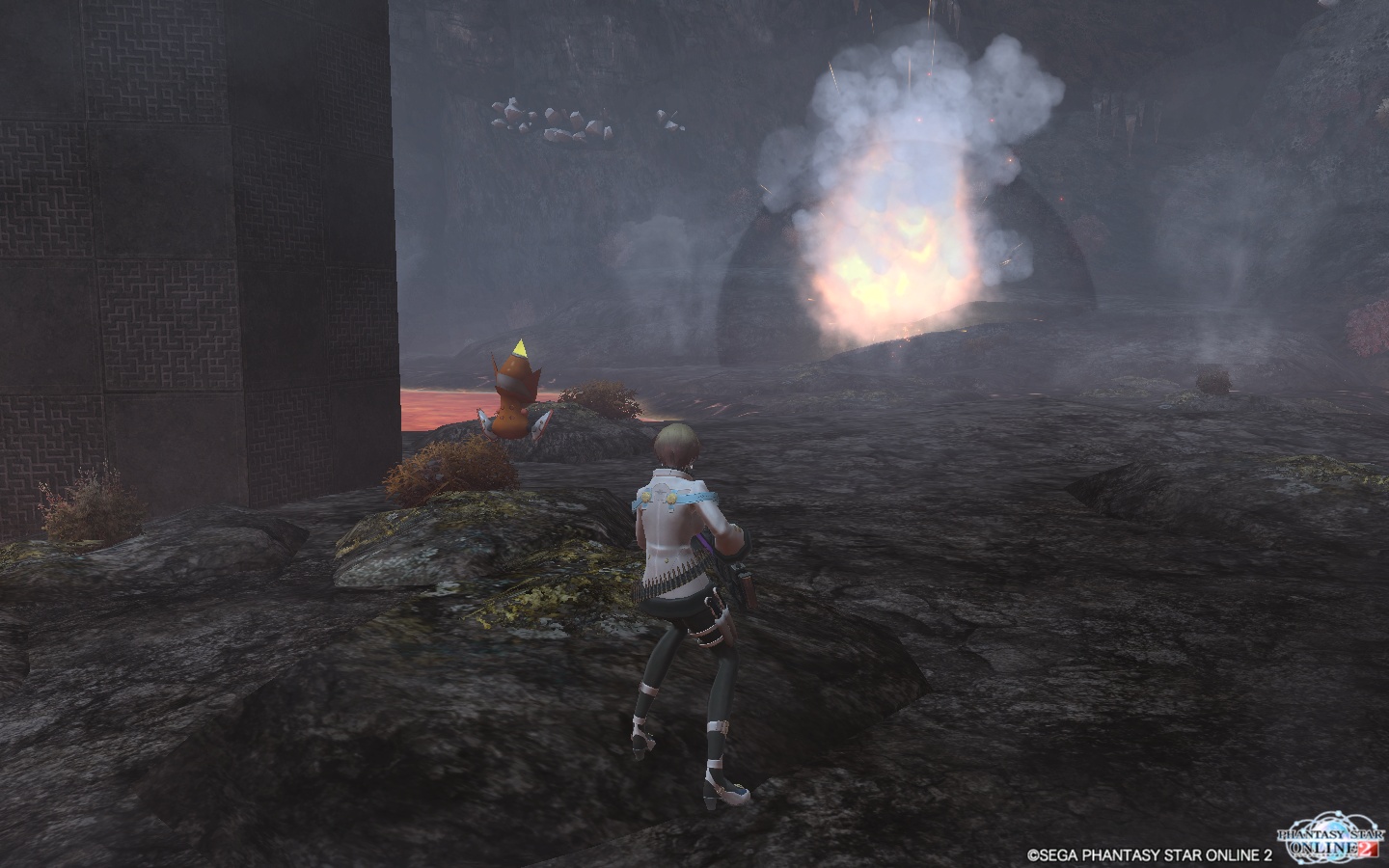 斜め情報に集束爆弾を射出、これが下に着弾して広範囲にダメージを与えます。