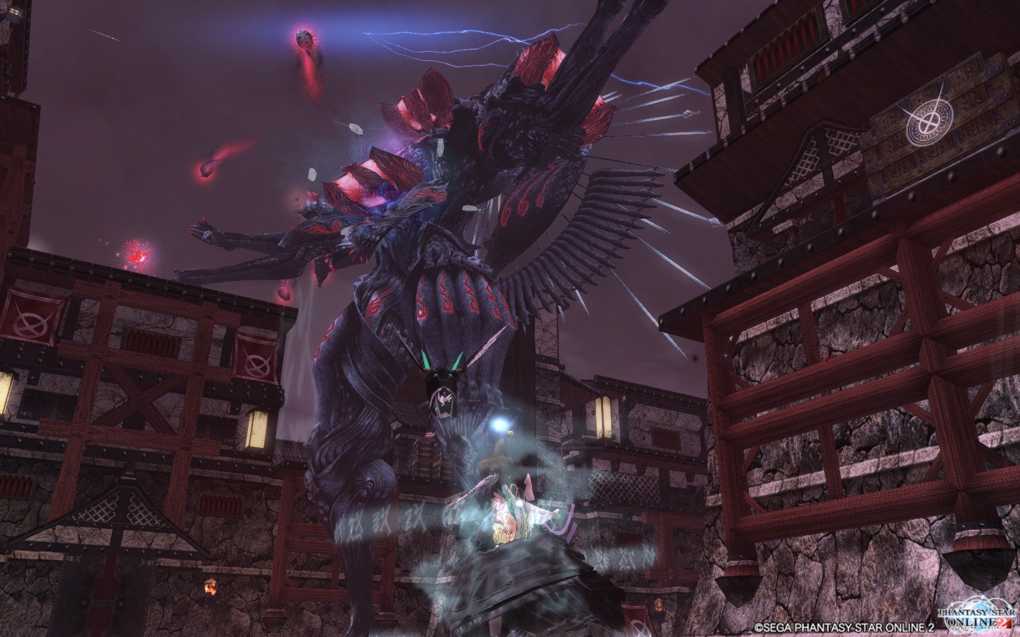 前哨戦の時と同じようにまず両膝にWBを貼りつつ破壊し、後は胸や腹に貼ってフォトンセイバーや裏パレットのフォトンラッシュで斬りまくるという感じ。ジャンプボタン押しっぱなしでずっと上昇できるので、高度を合わせて「えい!」という感じで。