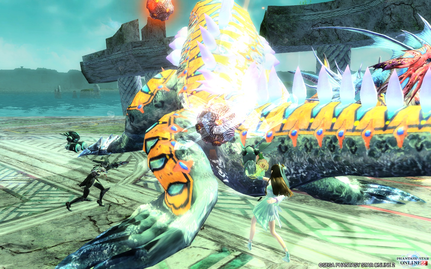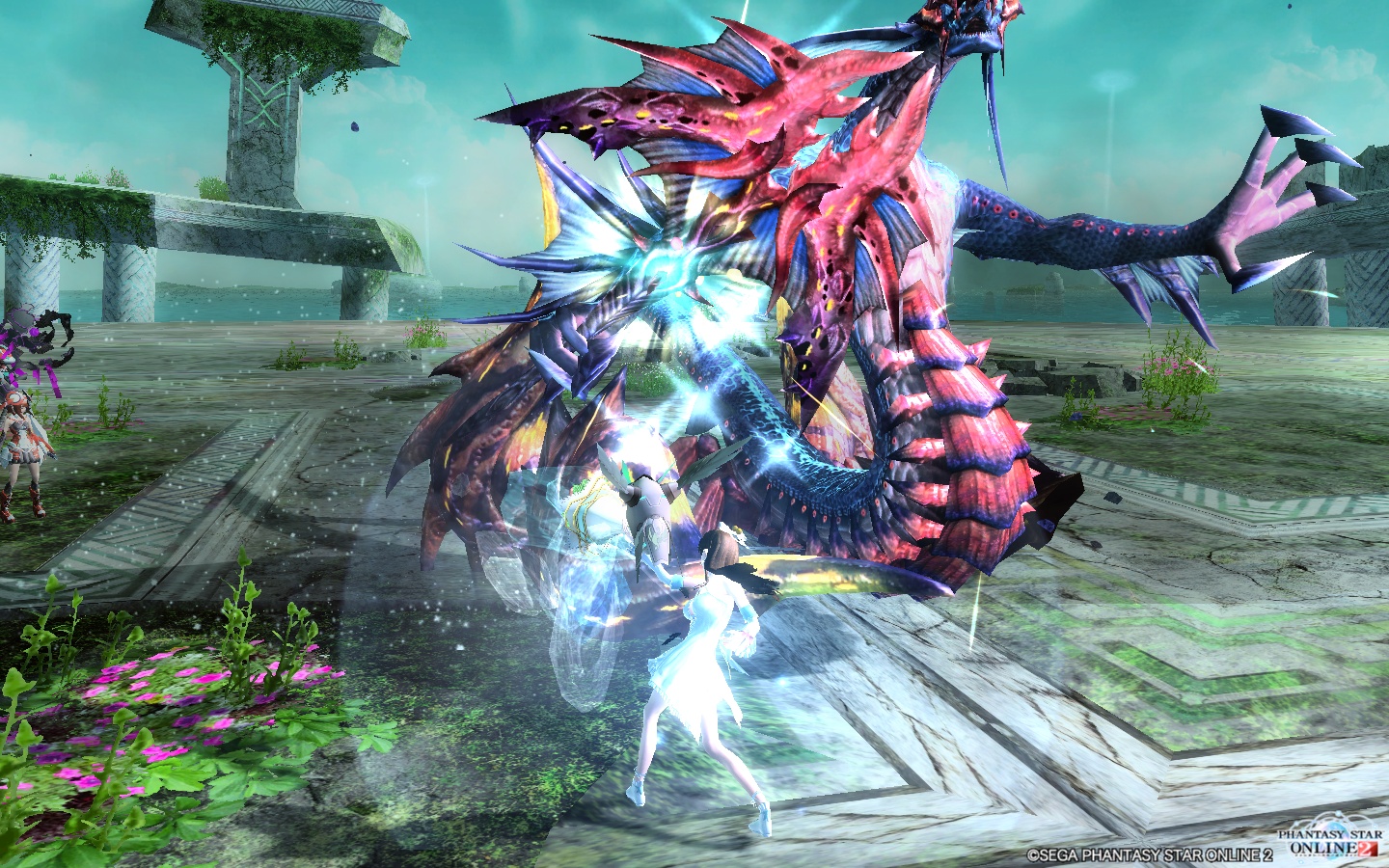 龍祭壇の中ボスです。ヴォル・ドラゴンを召喚してけしかけてきたりします。レア種(上の画像が実はそう)だったら、ご丁寧に召喚するのもレア種のバーン・ドラールになります。召喚されたのはダメージ与えられないので回避あるのみです。周囲を回る4つの柱を破壊しなければ本体に攻撃できません。それなりに高速で本体のまわりを回っていますが、ターゲットロックはできるので破壊はさほど難しくありません。WBを貼るまでもないといえばないのですが、貼って 素早く倒す方針でも問題なし。ただし、本体に貼る分の残弾を確保するのを忘れずに。