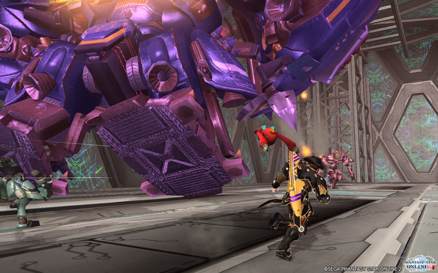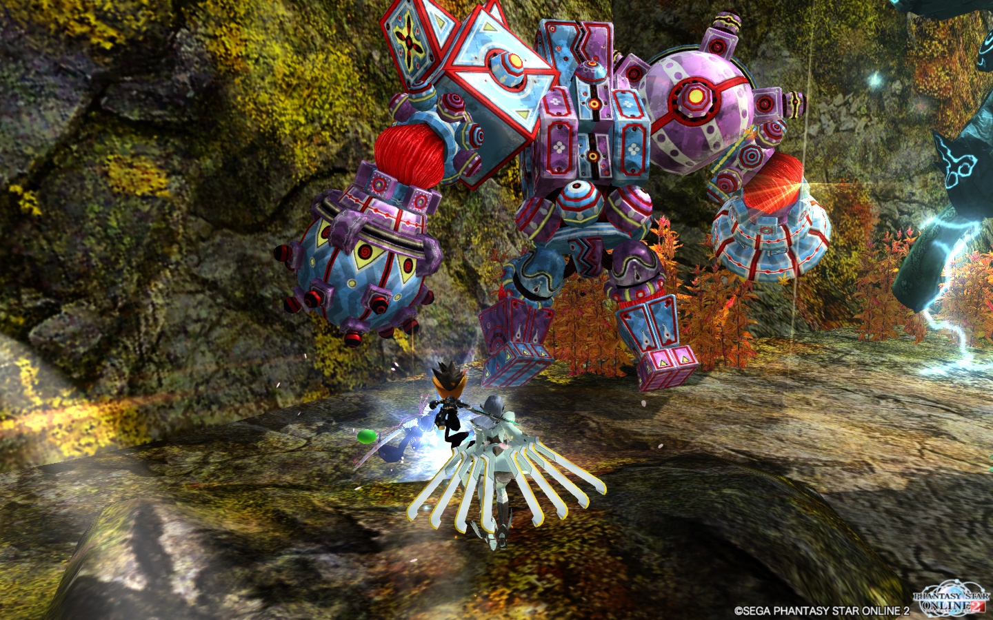 黒ノ領域の中ボスです。ここに来てハルコタンでは初のダーカーボスだったりします。玩具系ダーカーはなんというかキモ可愛いというか、不気味さがどうしても裏に見え隠れしてますね。左右の肘と膝のコアを全て(4つ)破壊するとダウンします。このコアにWBを貼ってもいいのですが、ダウンした後現れる小さな本体に貼る分を確保はしておきたいです。