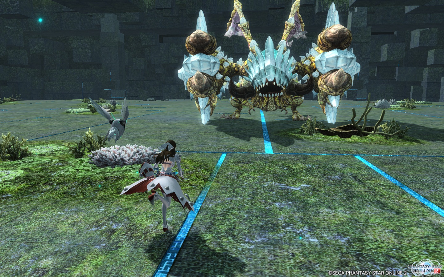 海底の中ボスです。だるま落としキャラですね。どちらかというと採掘基地防衛戦で気がついたらクルクル回ってるほうが印象に残ってますが…。胴体に順次WBを貼って頭部の高度を下げると、近接職が頭部に攻撃しやすくなります。