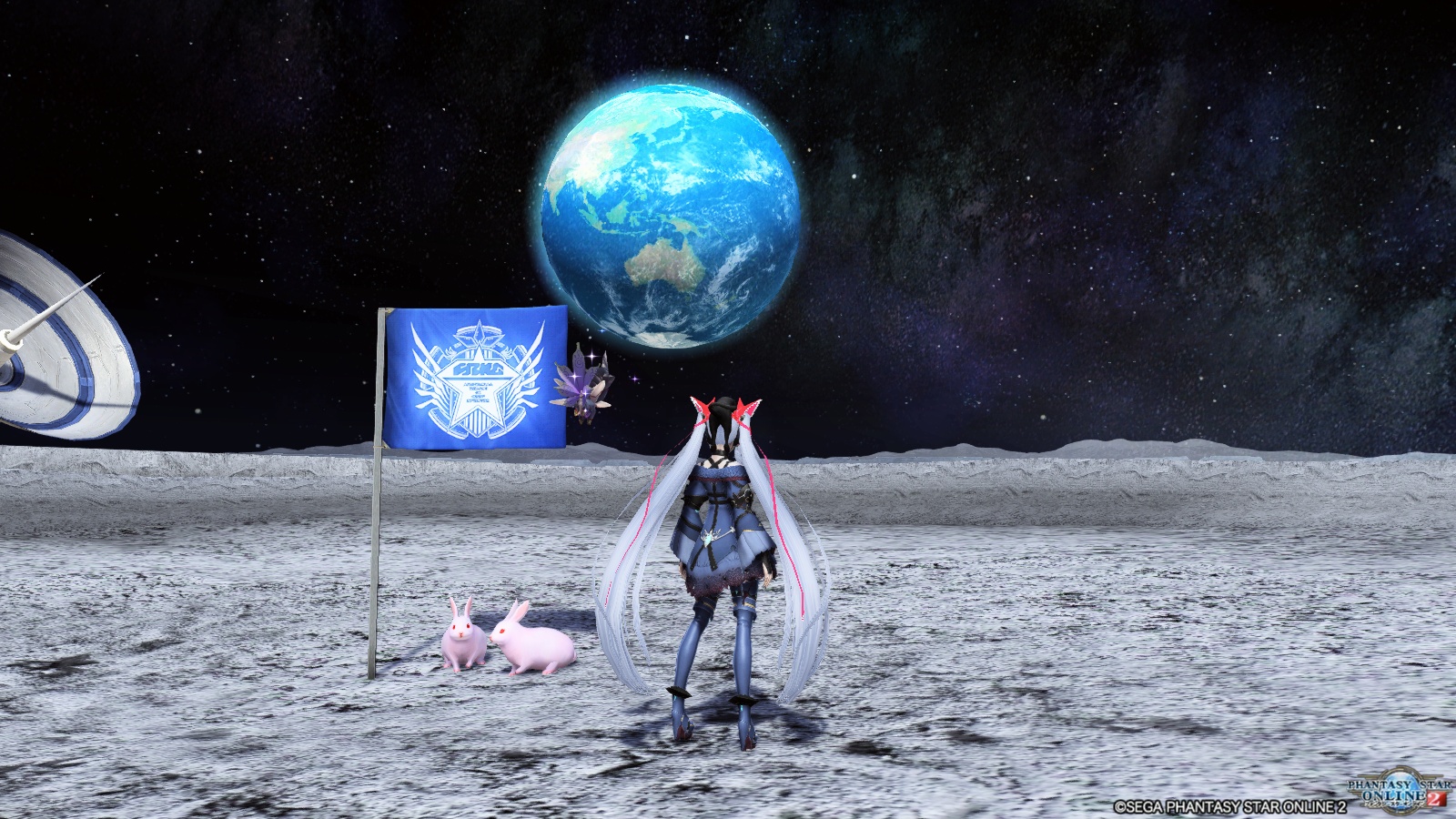 エリスは月面に引っ越したチームルームでうさぎ探しをしてました。これ絶対やりたくなりますね(笑)。