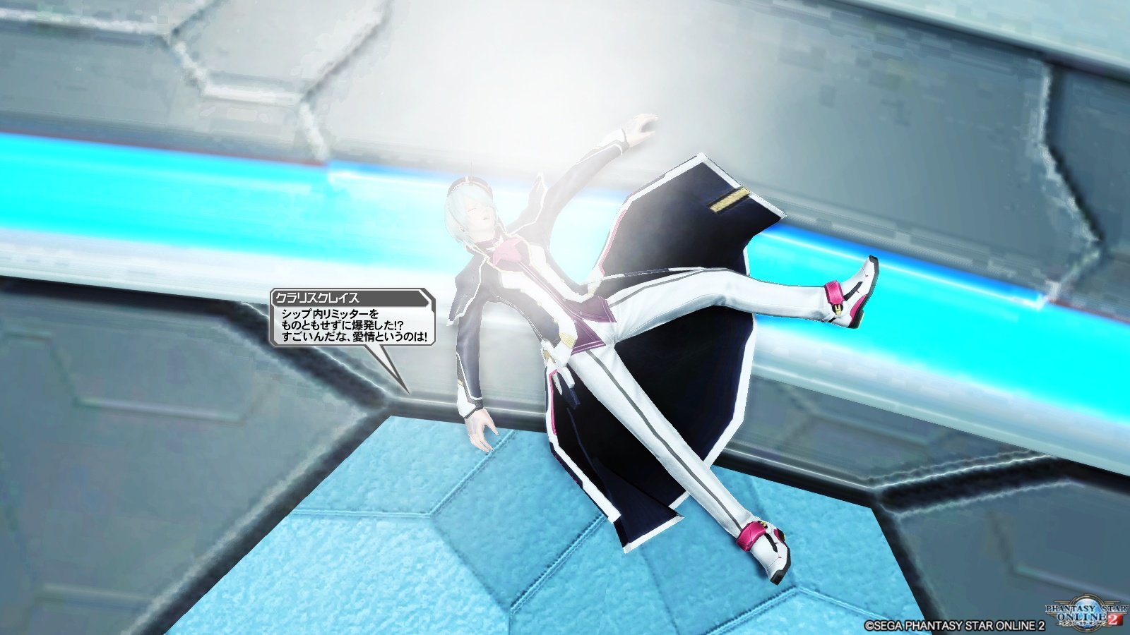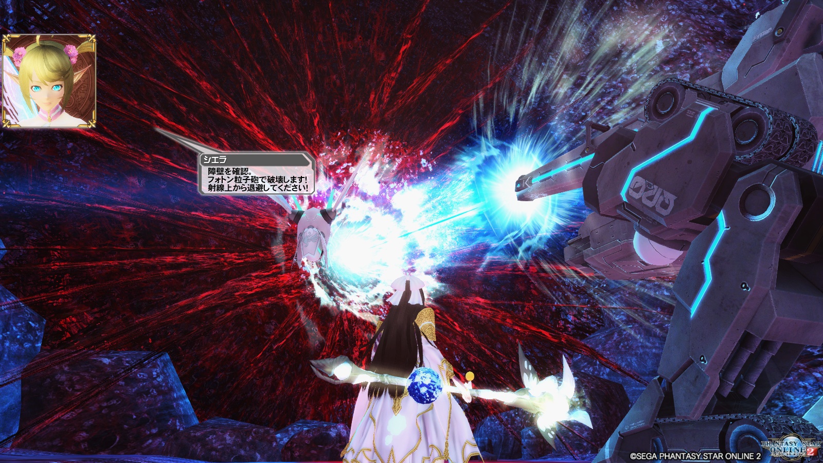 皆の見世物になる前に、アークスシップにダーカー侵入して、その迎撃クエストが始まります。単騎特攻するストラトスを追うプレイヤー。ていうか、ヒーローなら単騎特攻できると思うんですけど。なんか、こうストラトスを未熟なキャラとして描くのが非常に気に障るというか…。