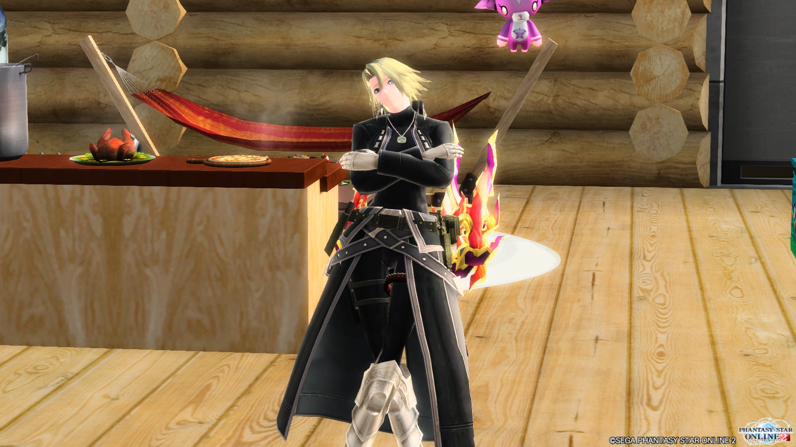 セットの武器迷彩『*龍鱗爪剣テンペリオン』は抜剣と短杖という組み合わせの複合迷彩です。エレナの場合、ブレイバーは弓専用で上げてるので、もっぱら短杖専用迷彩ということになります。とはいうものの、意外に刃物を持つことが無いキャラなので新鮮だったりします。