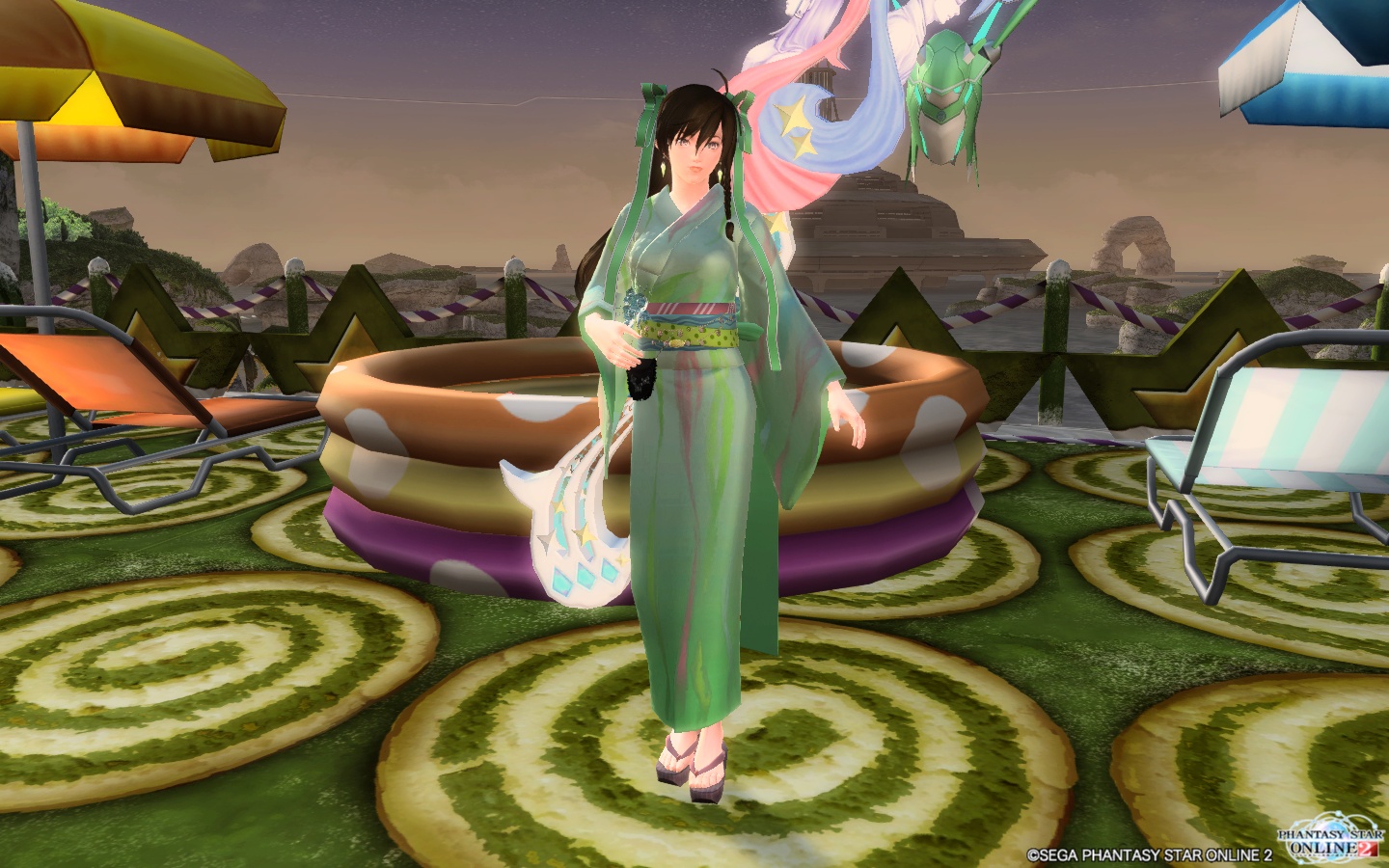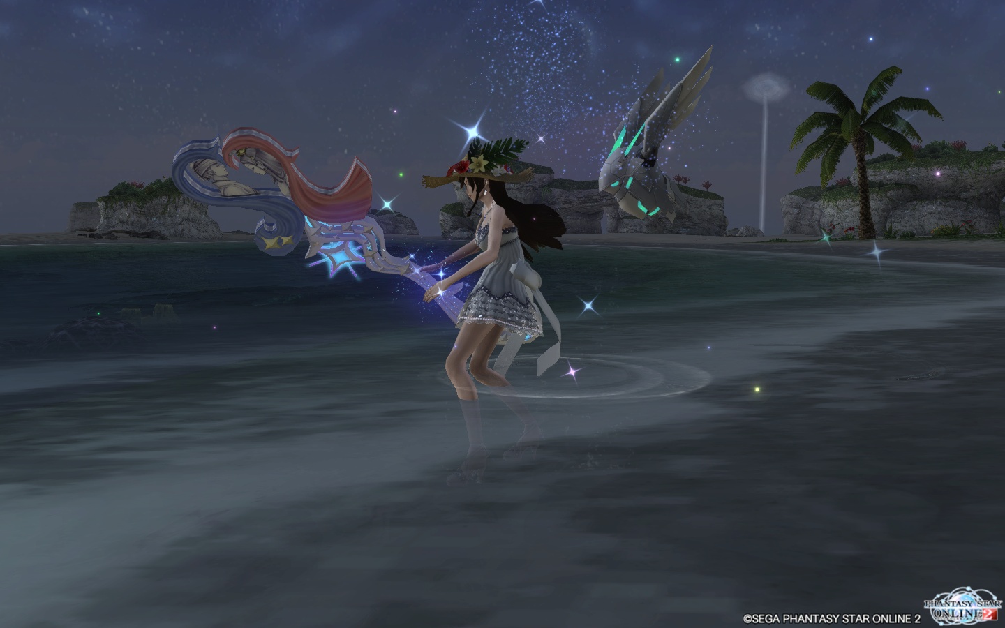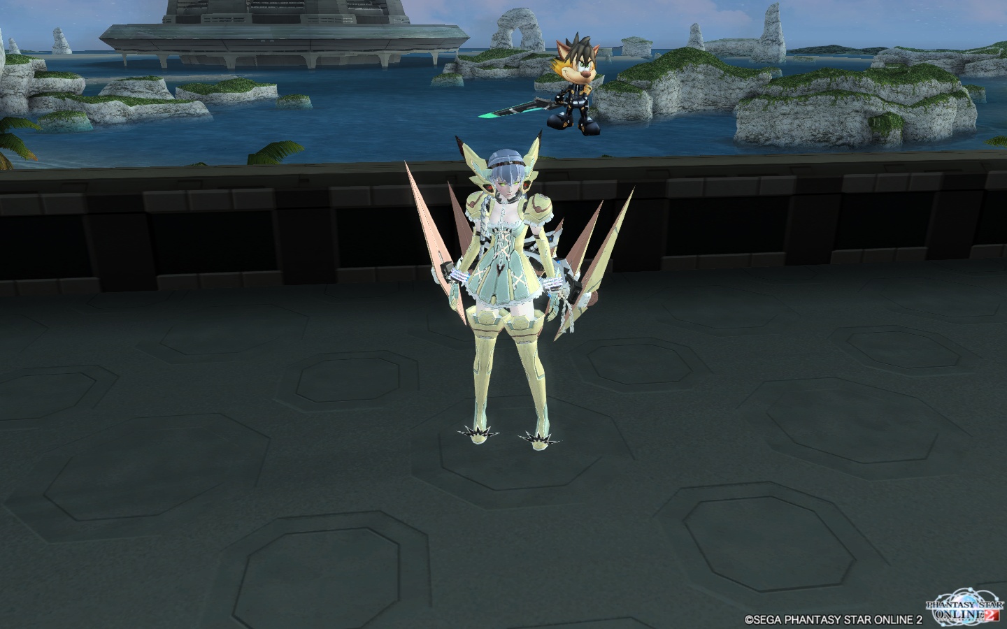エアリーサマードレスは何かのコラボではなく、強いていうなら「夏の装い」ということで追加されたオリジナルのコスです。PSO2は大々的なコラボでもないのに、こういうちょっといい感じの新作を追加してくれるんですよね。