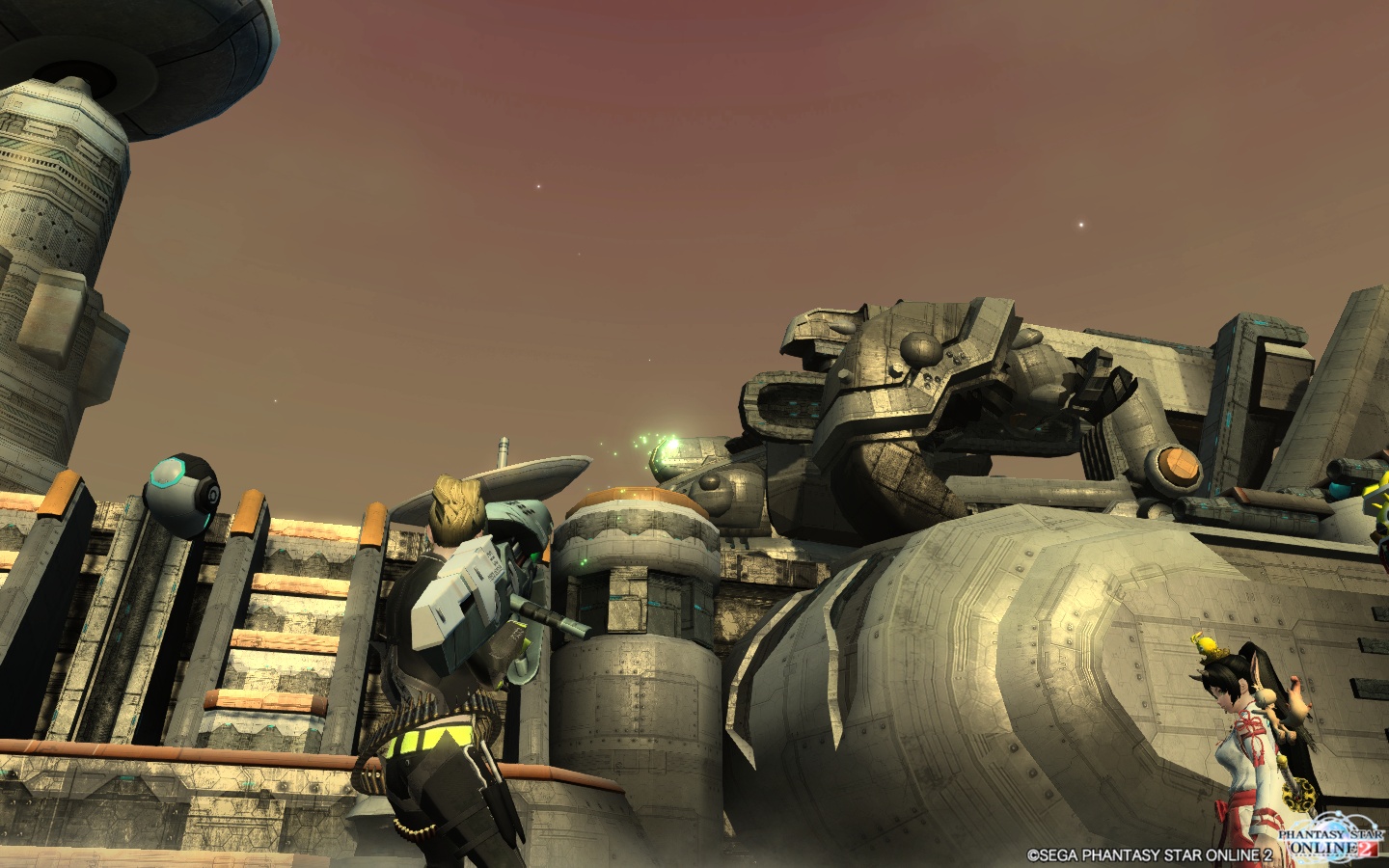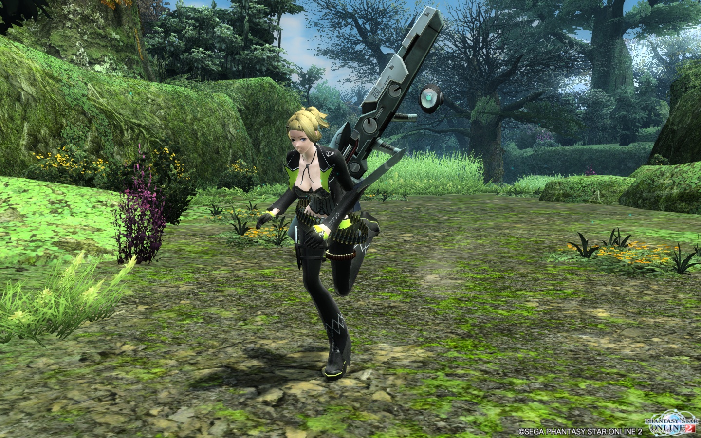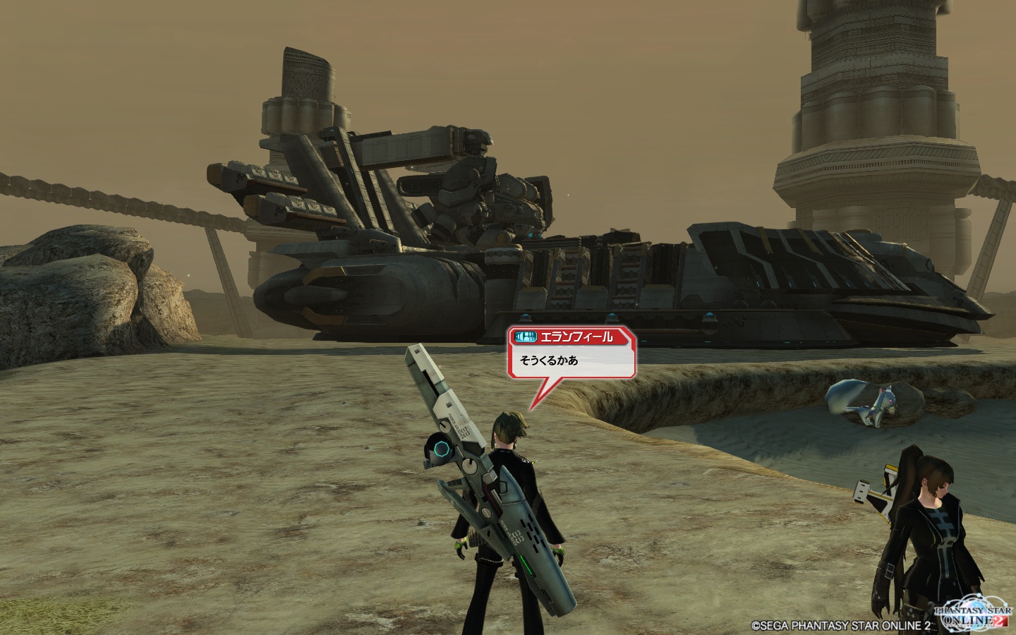 今は、このフォトンランチャーを愛用しています。さすがに武器については早々に持てるレア武器に切り替えました。これかなり大きなサイズの武器のはずですが、体格が大きなエラン姉さんにはちょうどいい感じです。