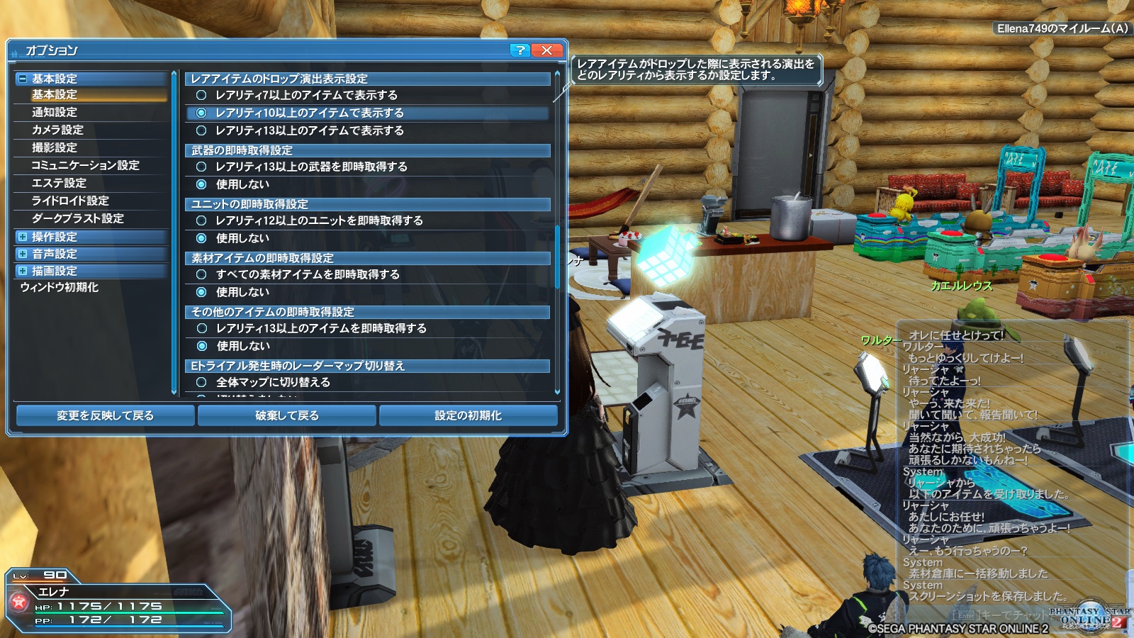 今までは★13以上の武器だけが対象でしたが、その範囲がかなり拡大されています。エレナたちは★14以上がドロップしたときの、ドロップオブジェクトから迸るオーラが見たくて、敢えて自動取得にはしていなかったのですが、今回を機に全部自動取得に設定を変更しました。やはり貴重品の取りこぼしを防げるのは大きいので。