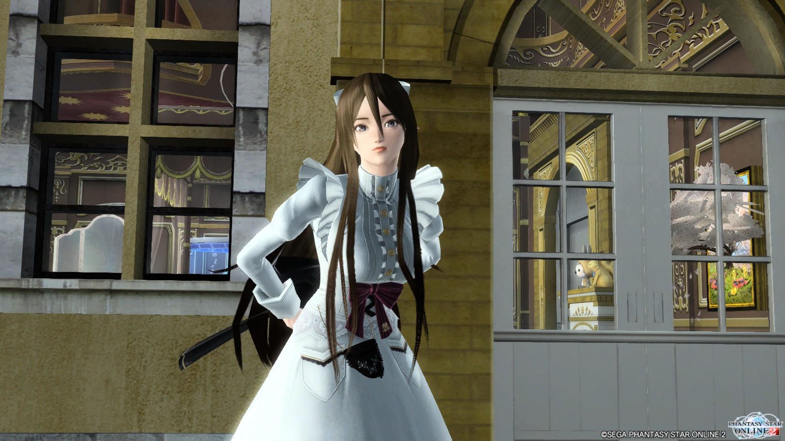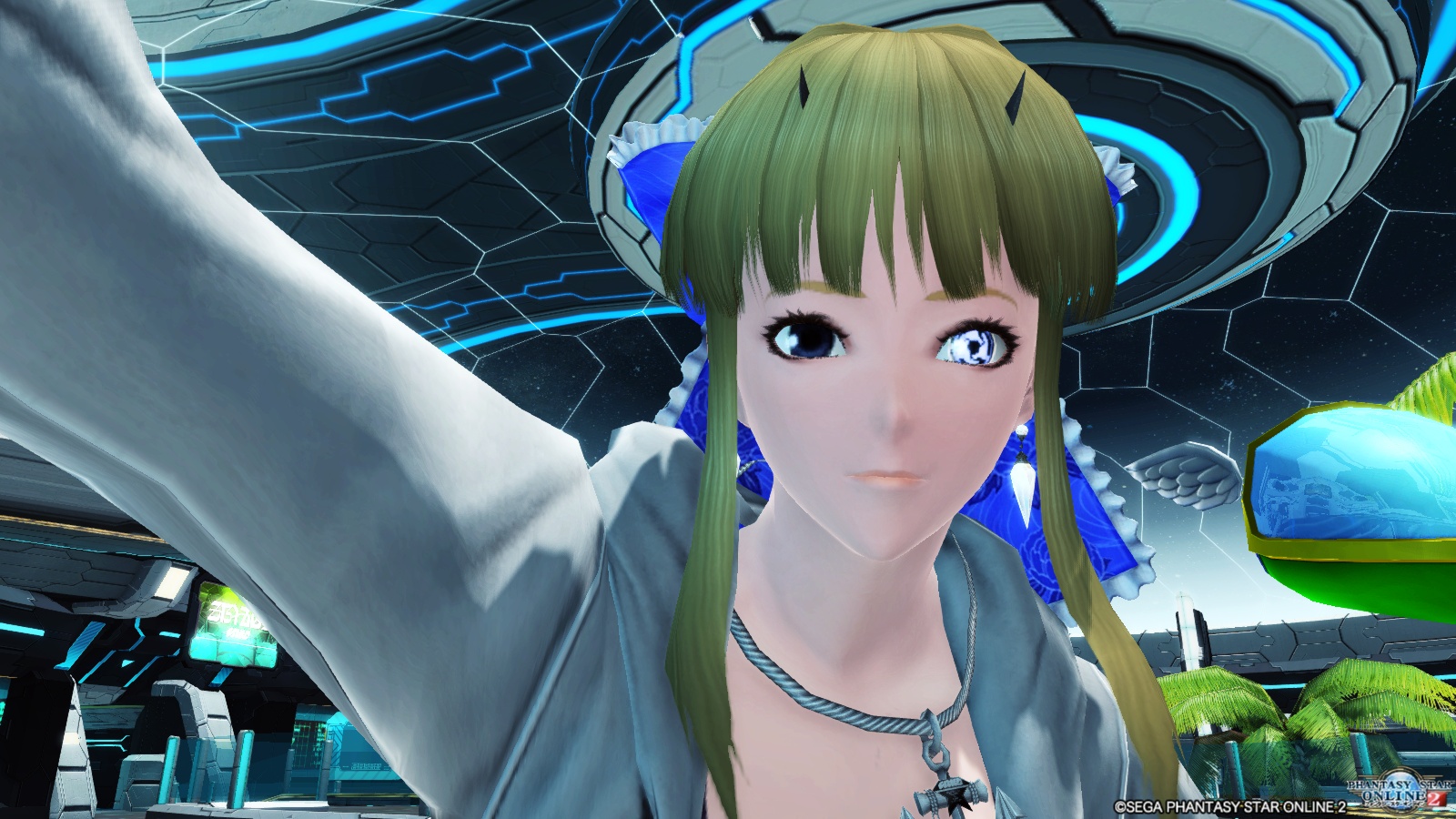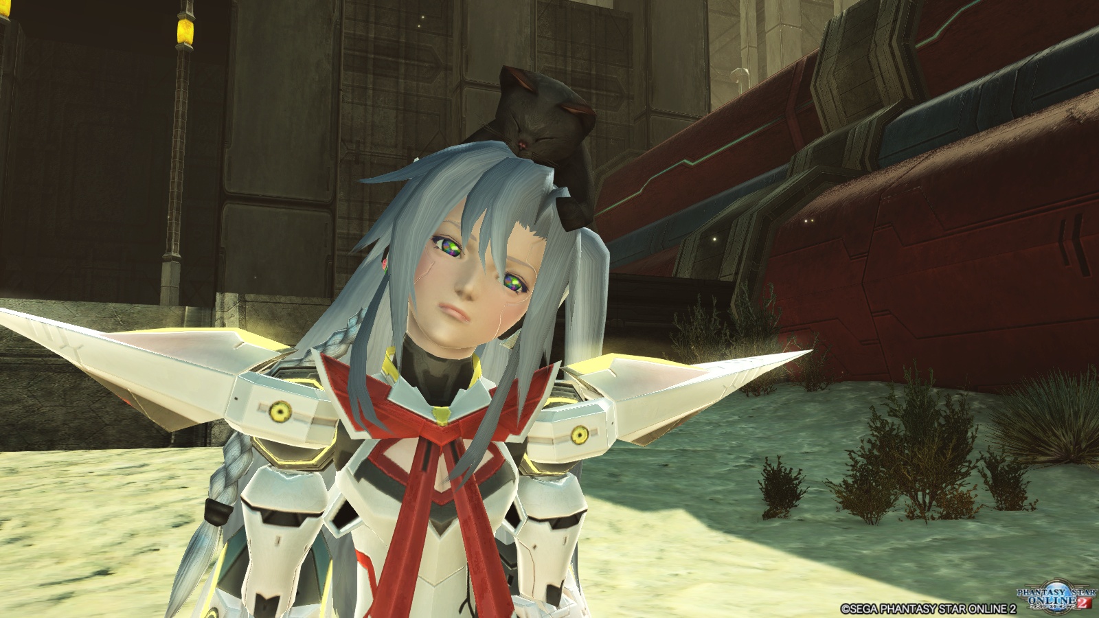 続いてアークスロビーで撮ったものも幾つか。ロビーアクション「よりかかる」はうまく寄りかかって見せるのが地味に難しいアクションだったりします。「壁に張り付いてから、肩越し視点で回れ右する」というのを教えてもらってから、だいぶうまくいくようになりました。