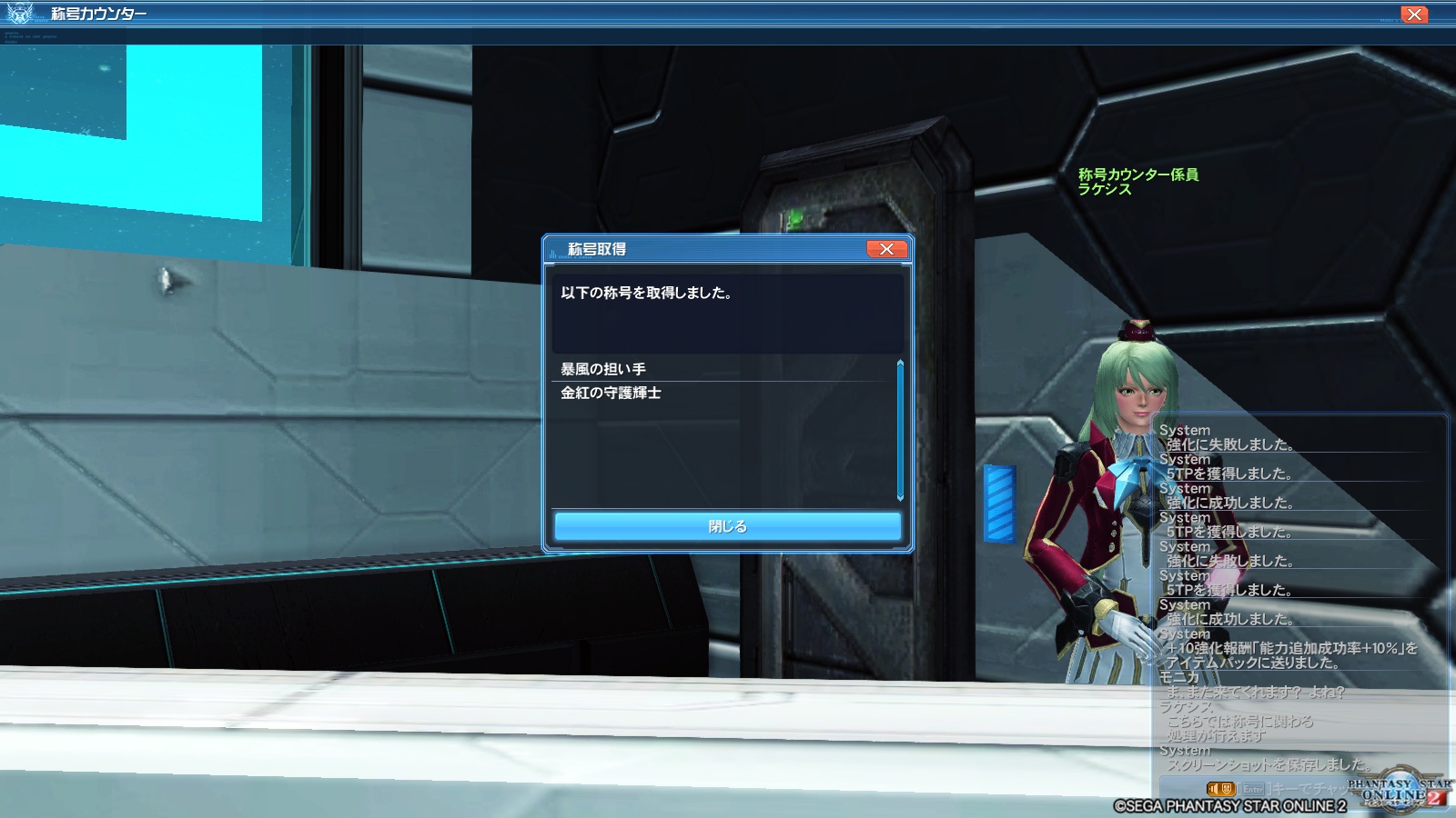 というわけで、エレナたちは旧式武器を+10まで強化し、その強化称号を増やす作業をちょっとだけ頑張ってました。その成果が出たというわけですね。ただ、これ称号がもらえる武器は割と限られており、Ep2以降で追加された武器はいくら強化しても称号はもらえません。すなわち抜剣・強弓・飛翔剣・魔装脚は全て対象外ということになります。そこが注意事項ですね。