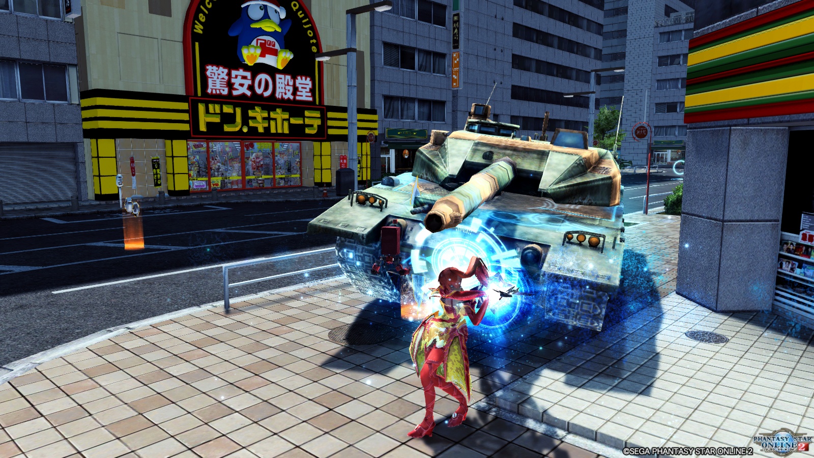 ドンキホーテの前で戦車を相手に大剣を振り回す。