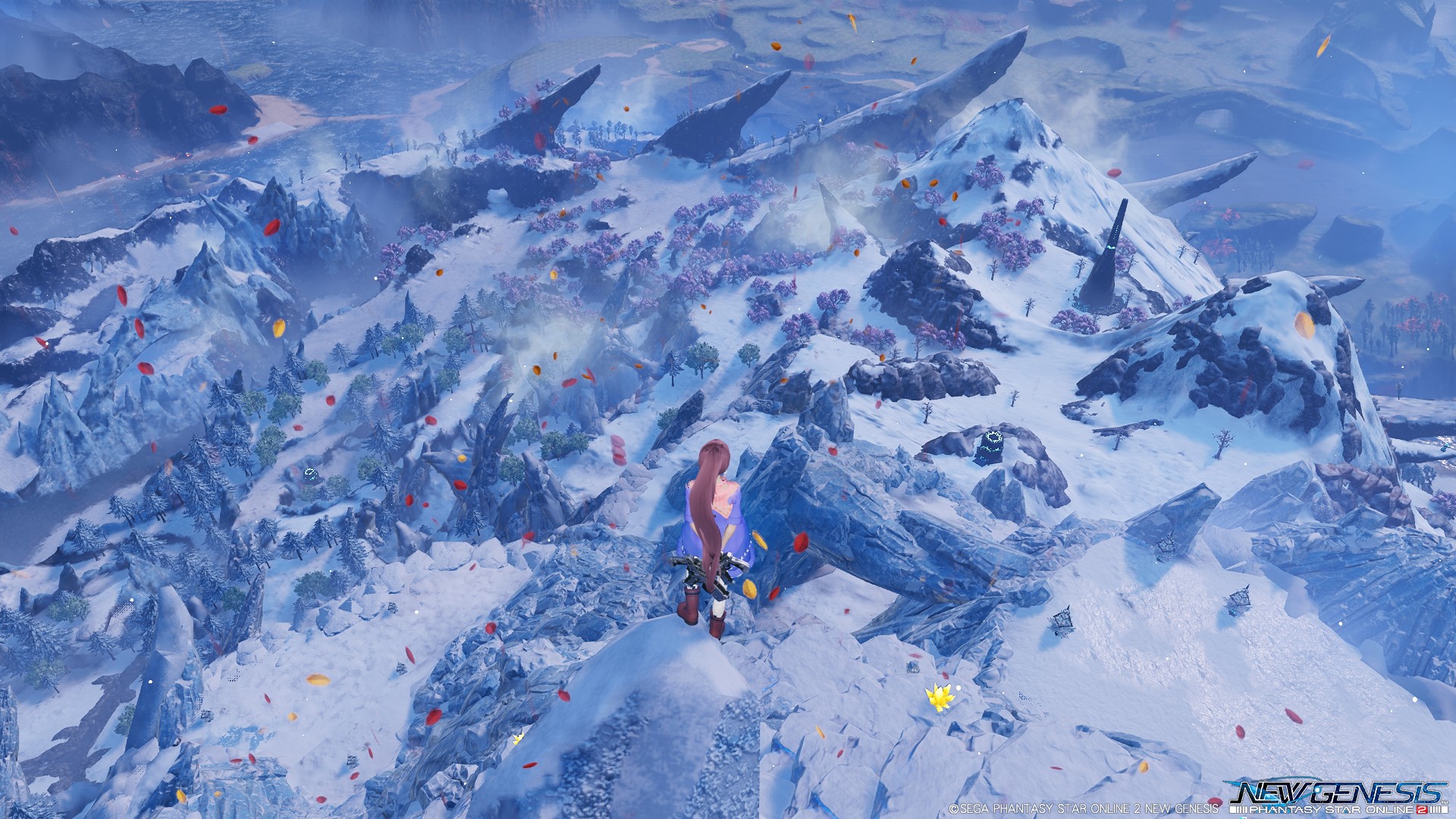 お月見の時期は、リージョン関係なく落ち葉が舞う世界になってました。その結果…クヴァリスでは雪景色だというのに、落ち葉が舞うという謎な状態になっていたわけですが、これはこれで趣が…あるかなあ?
