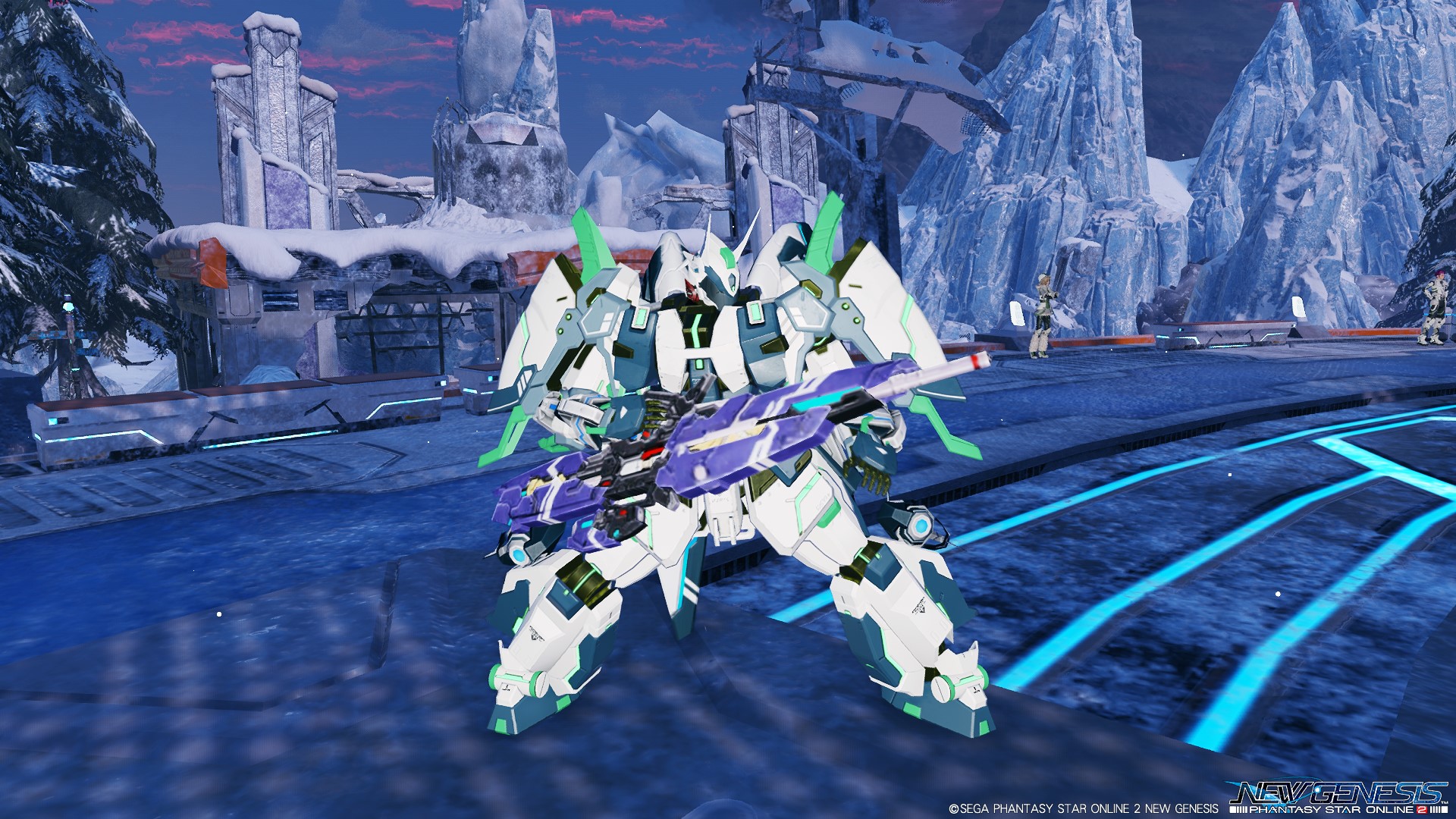 見ての通り「ロボを作る」がテーマです。外見に幾つかパターンがあり、カラーリング的には白を基調としたヘビーフォームのほか(上記画像)、紺を基調にしたライトフォームもあったりします。またガンナーのように身軽さが必要なクラス用にヒューマン形態も別にあり、そちらはいわゆる「イケメンお兄さん」という感じの造形です。