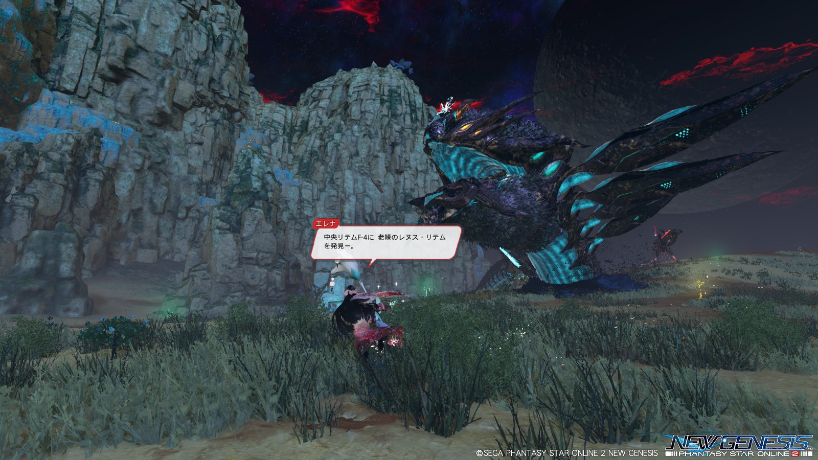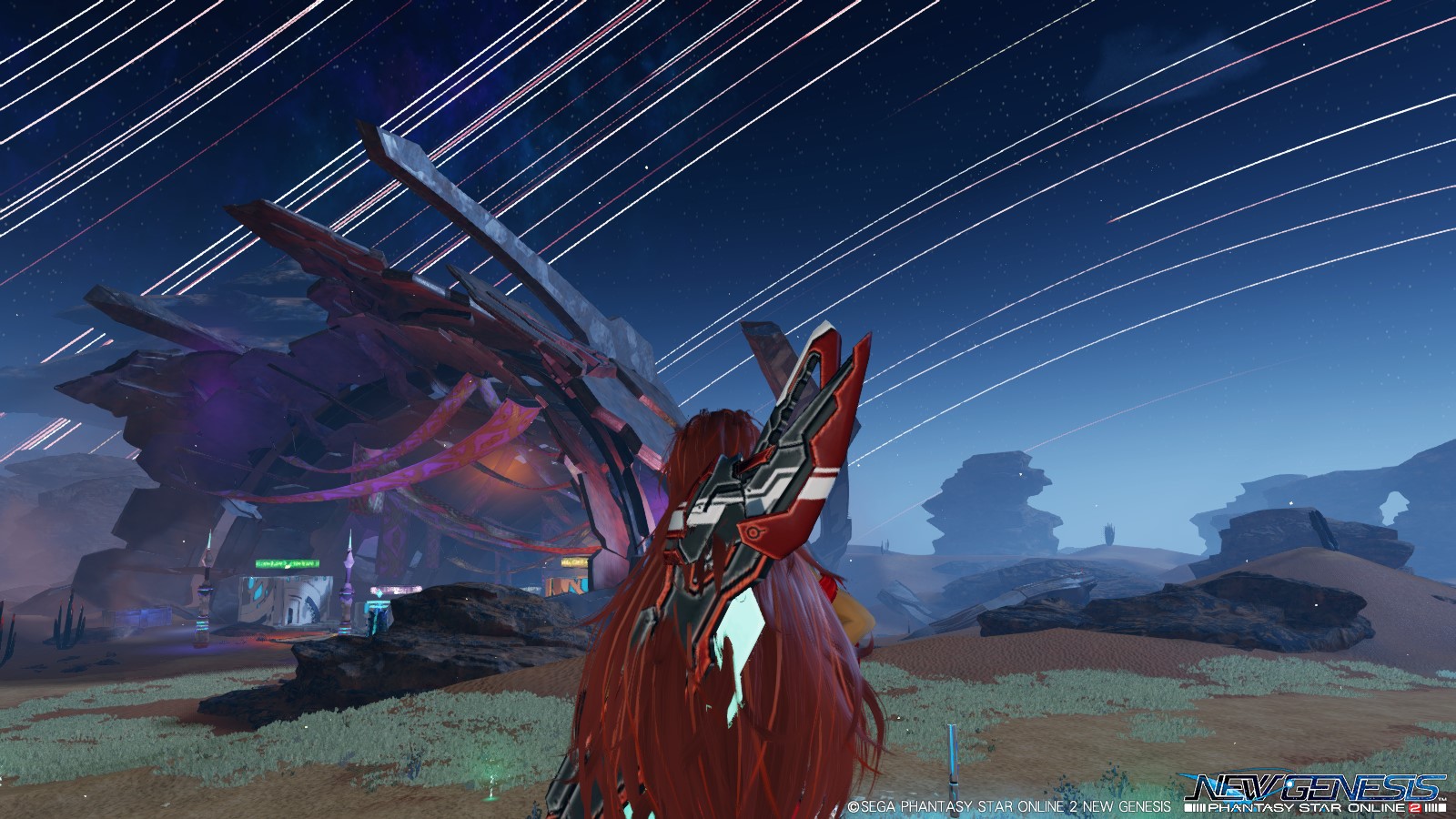 ストーリーとは全然関係ないのですけど、キャラクターが自分の話を終えて立ち去る時、「振り返ってからピタッと止まり、その後おもむろに歩きだす」って動きに、なぜ退化しちゃったんでしょうね。旧PSO2でも Ep4あたりからはかなり自然に振り返って歩きだしてた気がするのですが…。