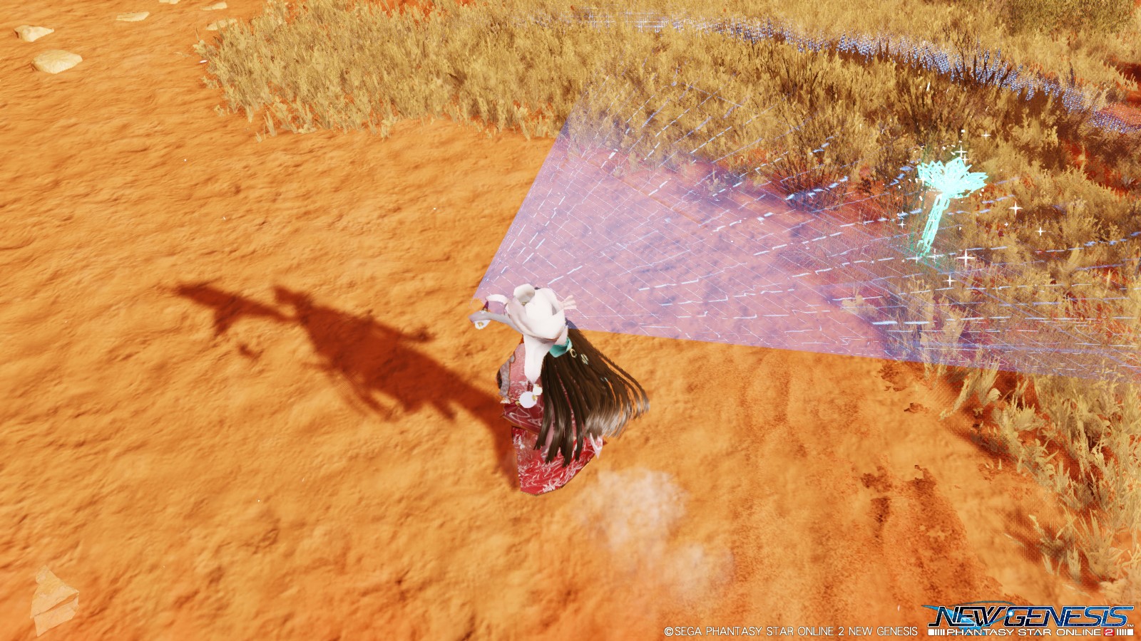 こういうの凄い思わせぶりなんですけど、ただ思わせぶりなだけなんですよね。ターゲット出来るわけでもないので、植物の名前もわかりません。こういう植物の採取とか、自然現象の観測とかのクエスト(NGSの場合は タスク かもですが)があれば、その世界のことが分かる良い題材なのに勿体ないと思います。