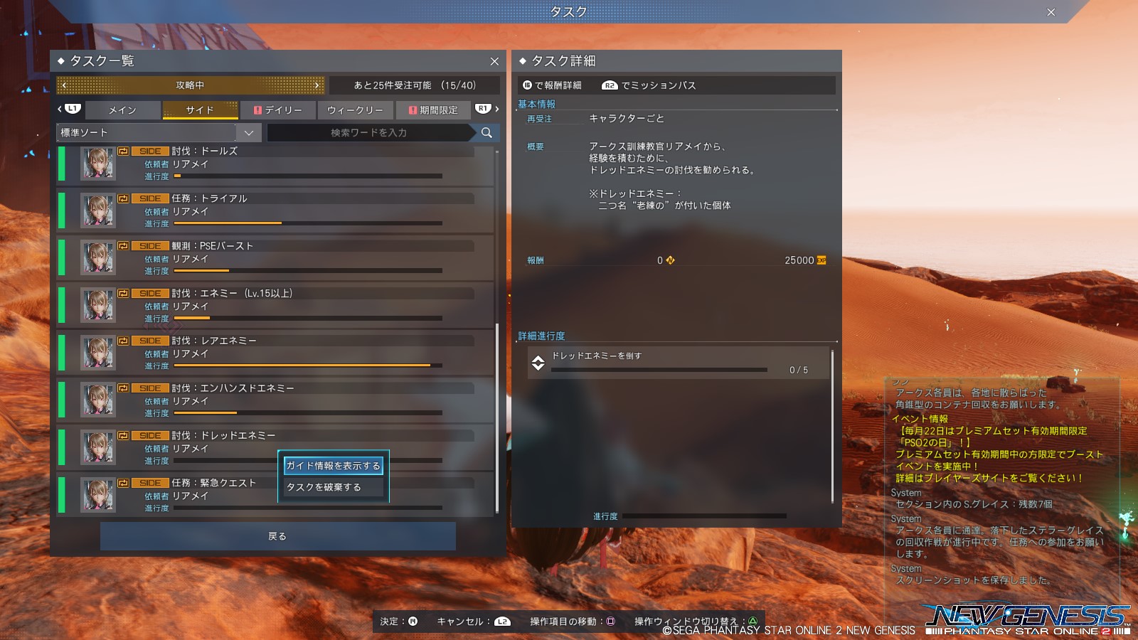 アカウント単位のタスクだと、別キャラでクリアしてしまうと、以後 他キャラで表示対象のタスクがない!ってことになって面倒かもしれず、それは初期状態に戻すでも良いのですが、何が何でも初期状態に戻す必要はないと思います。もはやバグのレベル。