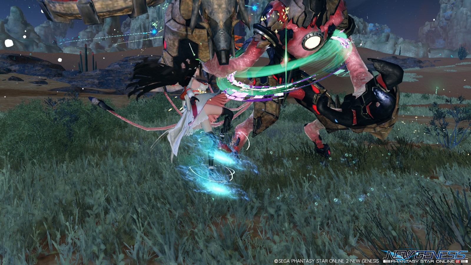 デュアルブレードは「テクニック併用はあまり考えない」という点では旧PSO2と方針は変わらなそうです。強い一撃をあたえるというよりは、絶え間なく攻撃を叩き込み手数で勝負する印象が強くなっています。面制圧が得意という特性にも変わりはなく、NGSの場合はPSEバースト発生時のエネミーラッシュへの対応しやすさが、ツインマシンガンと並んで得意な武器だと思います。