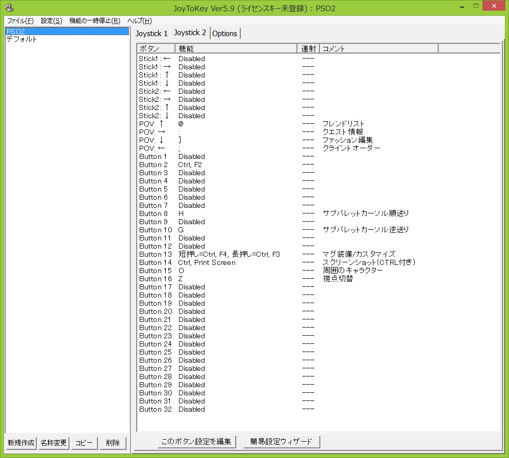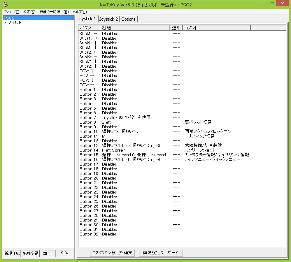 こんな感じで1つのボタンで複数機能を使えるようにする設定が、JoyToKeyはなかなか豊富で、ついつい色々やりたくなってしまうんですねえ。