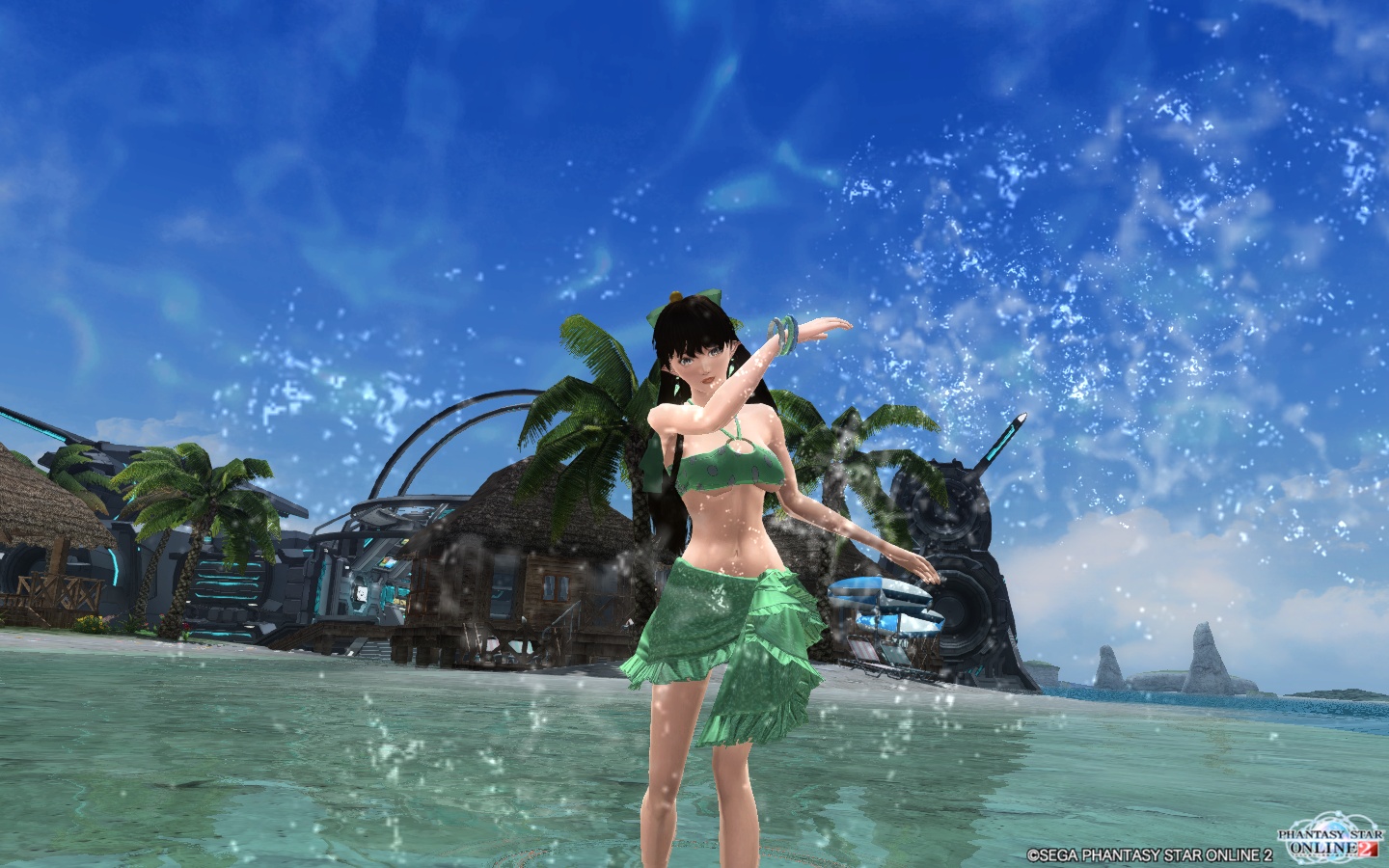 そういうのをもう少し増やしてみたいなあと思い、色々構想を練っていました。で、水着なら海辺がいいなと思っていたら、ちょうどチームルームが海岸拠点だったことを思い出しました。ウォパル海岸エリアでエネミーを警戒しながら撮るよりは遥かに簡単で、しかもそこにしかない仕掛けもあるので、拠点が期限切れになるか、誰かの希望で変わる前に行っておこうと考えたわけです。