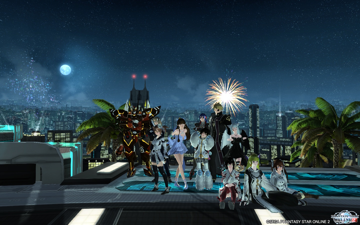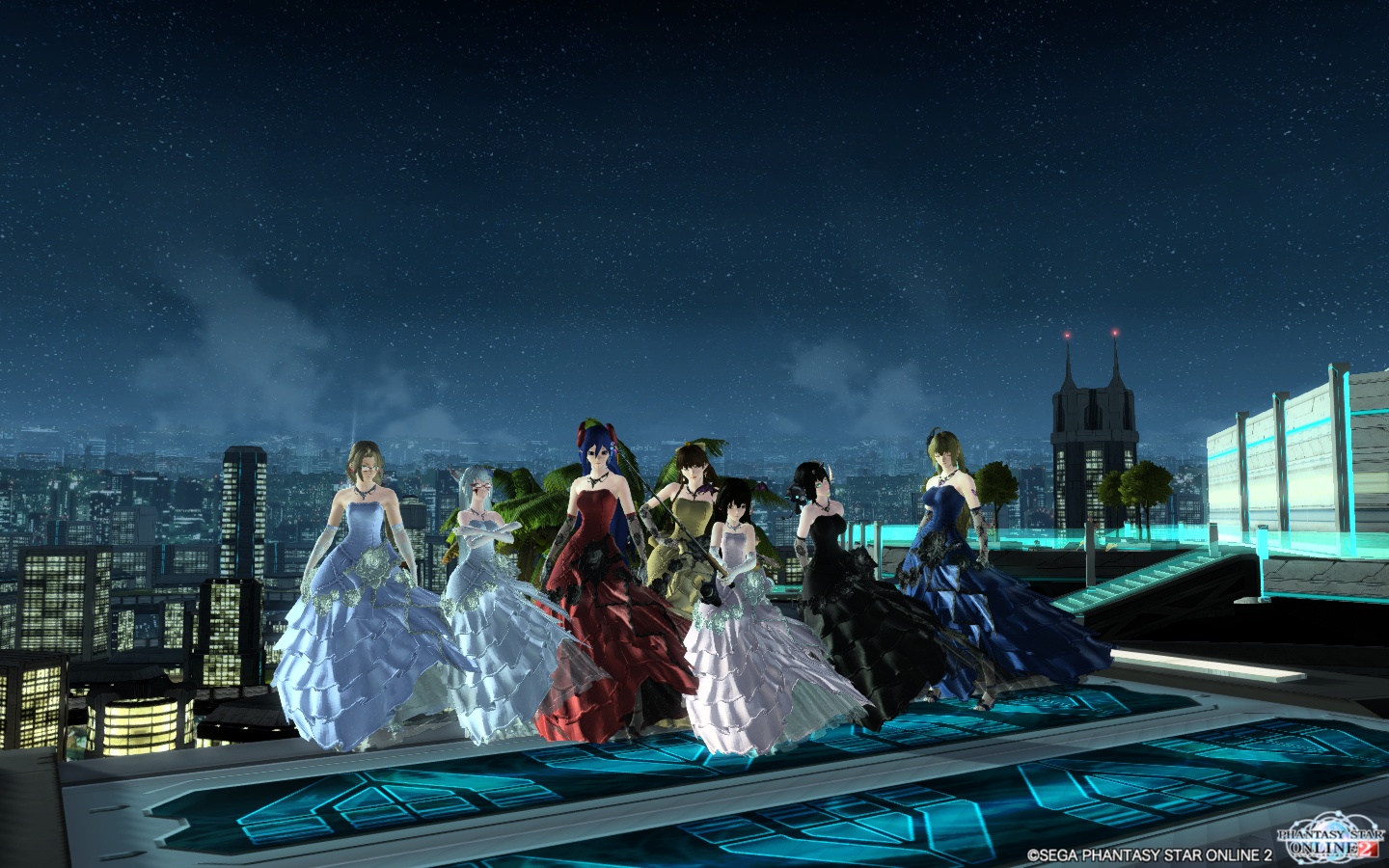 その後、ちょっとワガママ言って、チームルームを夜景拠点に移してもらいました。今度はドレスアップしての撮影です。…と、拠点が変わったという知らせを見てでしょうか、さらにチームメンバーがチームルームに集まってきました。