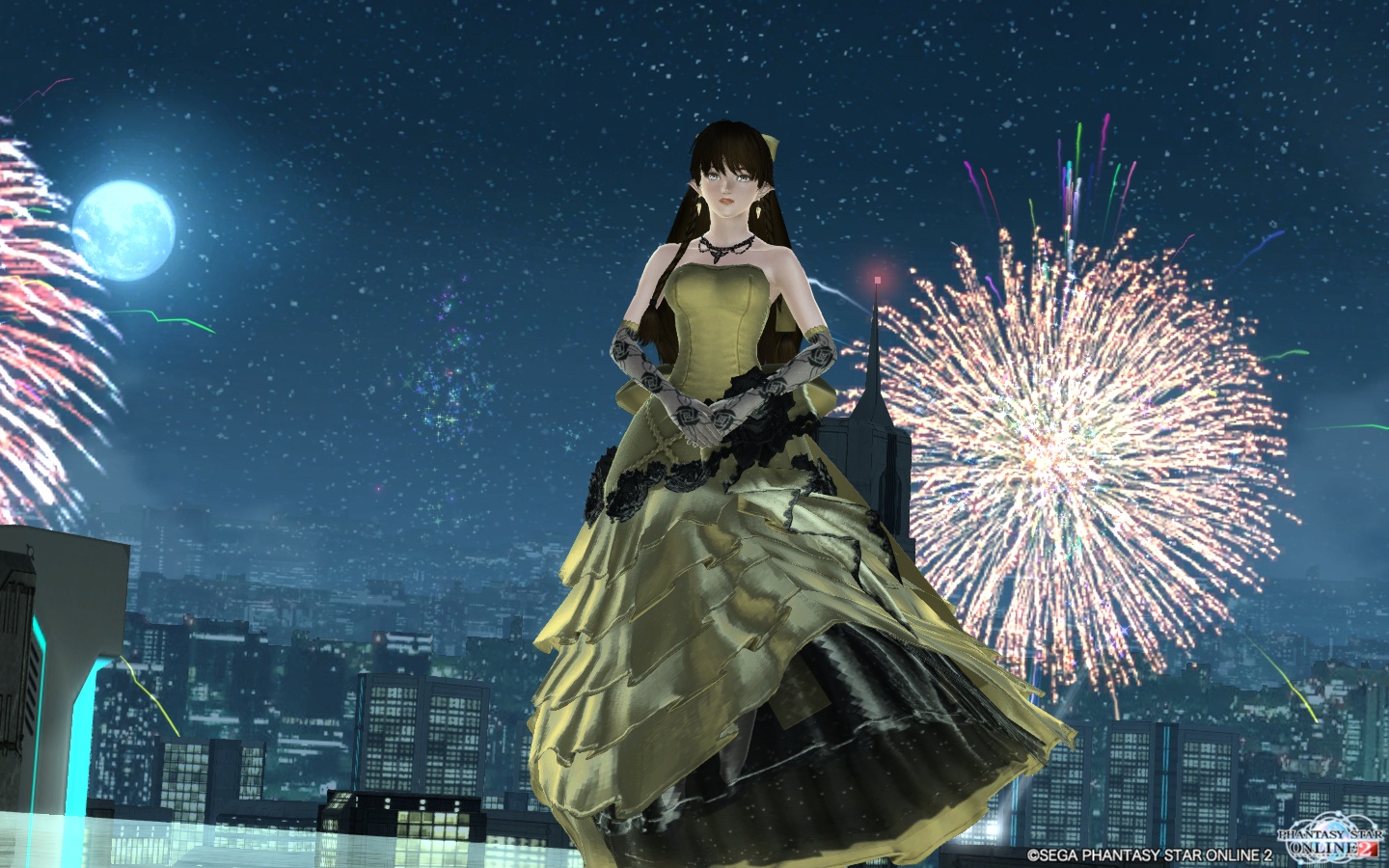 ブライダルドレス月 ですね。こちらは花火がバッチリ空気を読んで大写しのバックになってくれました。お月様にも左の方に出演していただきました。