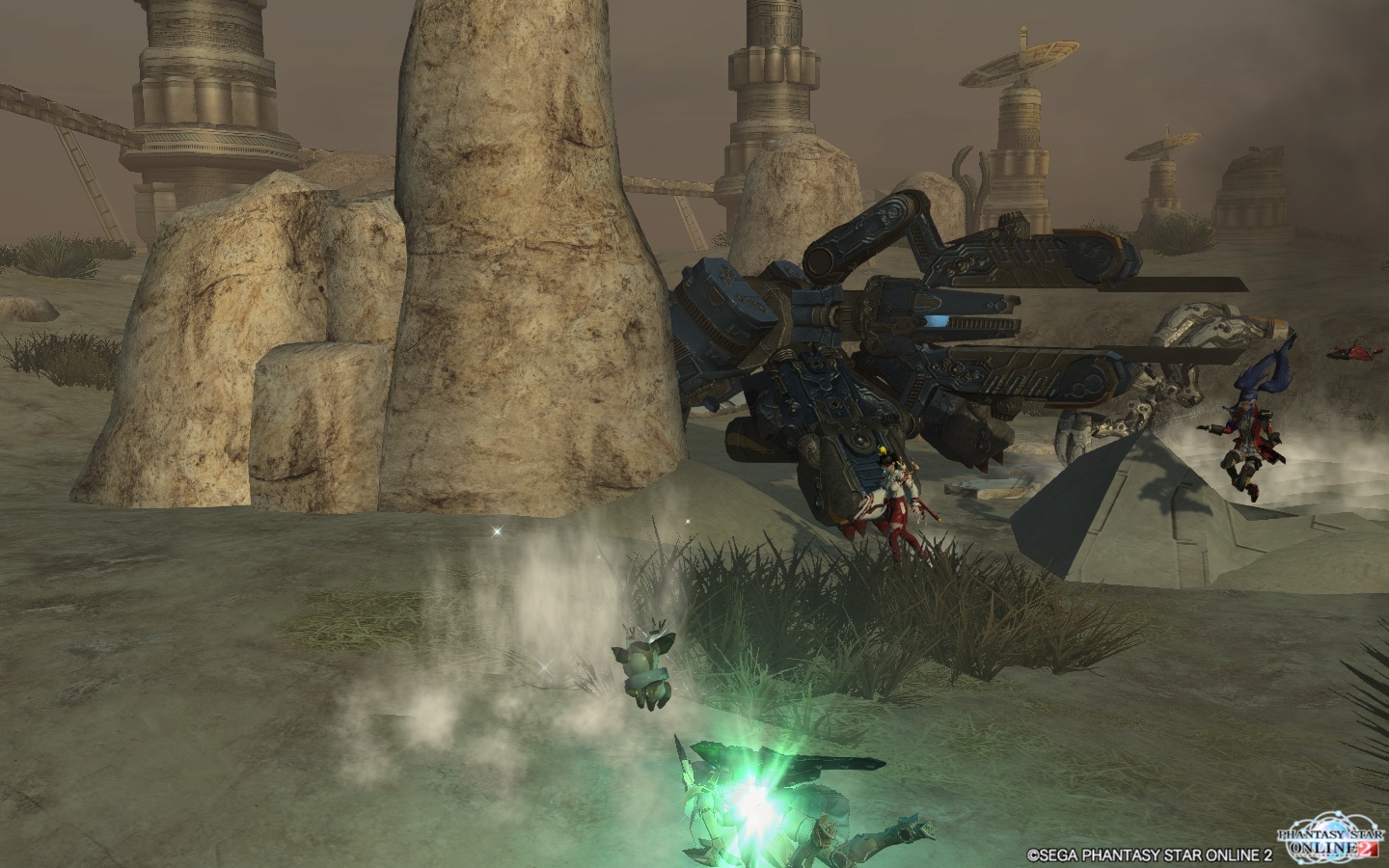 これからものんびりアークス生活を書き綴っていきますので、お付き合い下さい。これはエリスが砂漠探索していた時に遭遇したトランゼクシアです。採掘場跡のヴァーダーソーマと同様、これにもよく砂漠で遭遇します。トランマイザーにはないビームランチャー形態になってるのを激写。もちろんソロ時に直撃したらキャンプシップ送りは免れません。